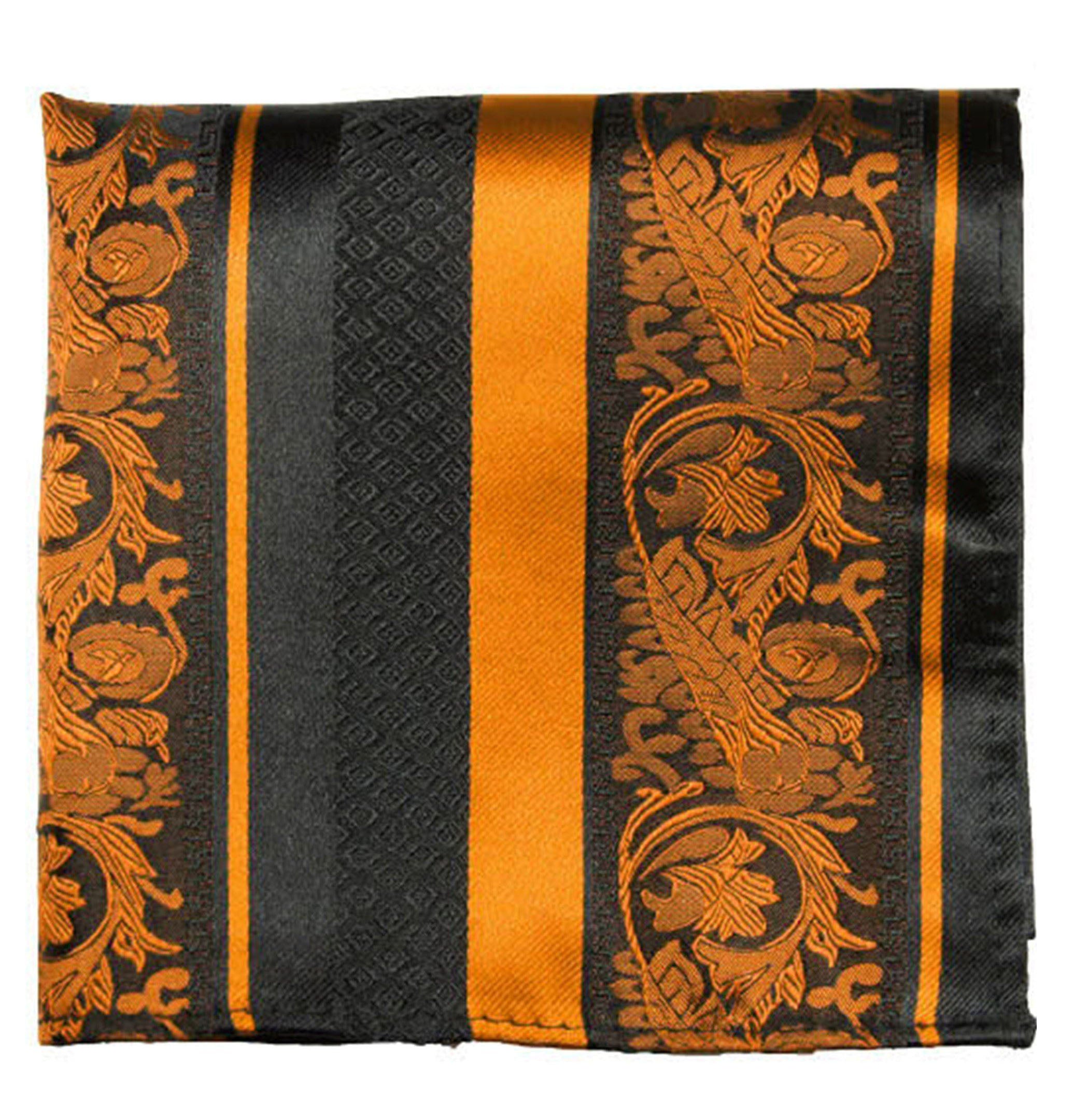 Experience the luxurious and striking design of our Fire Orange and Black Silk Pocket Square. Handcrafted with 100% pure silk,...