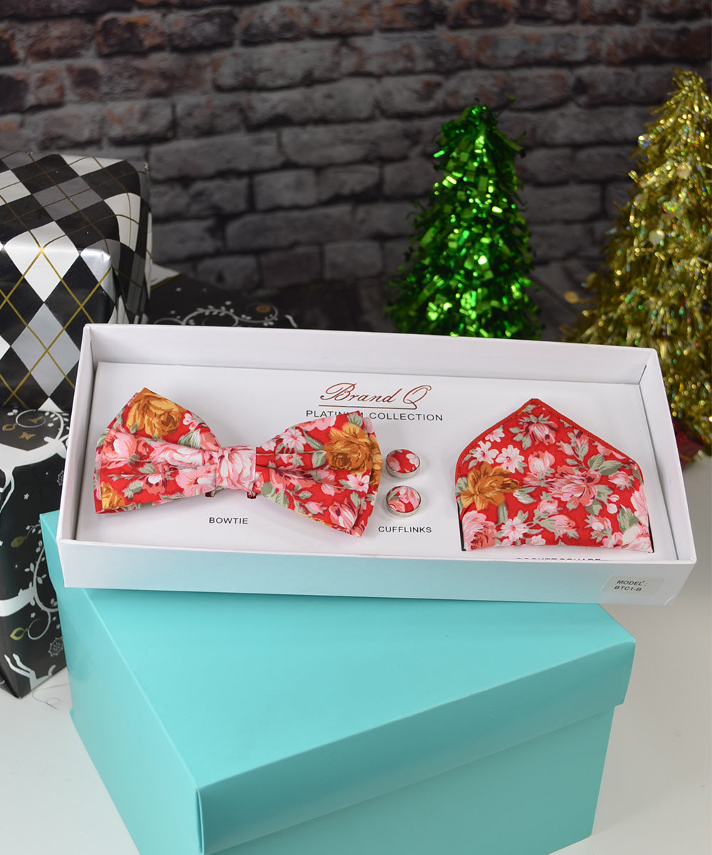 Bittersweet Floral Bow Tie, Pocket Square and Cufflinks Gift Box Set by Brand Q Platinum Collection. Bow Tie is pre-tied,...