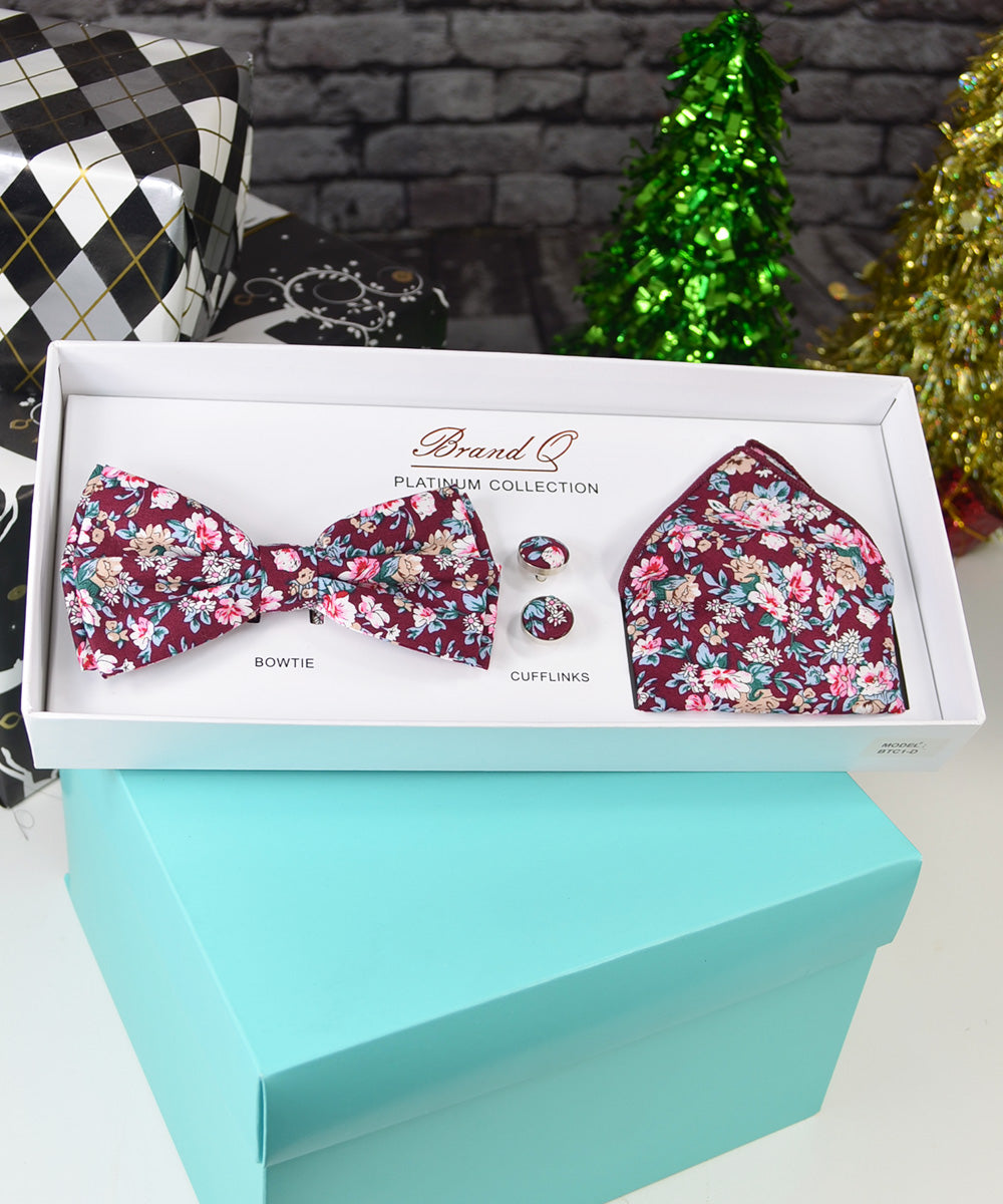 Beautiful Bow Tie, Pocket Square and Cufflinks Gift Box Set by Brand Q Platinum Collection. Bow Tie is pre-tied, fits...