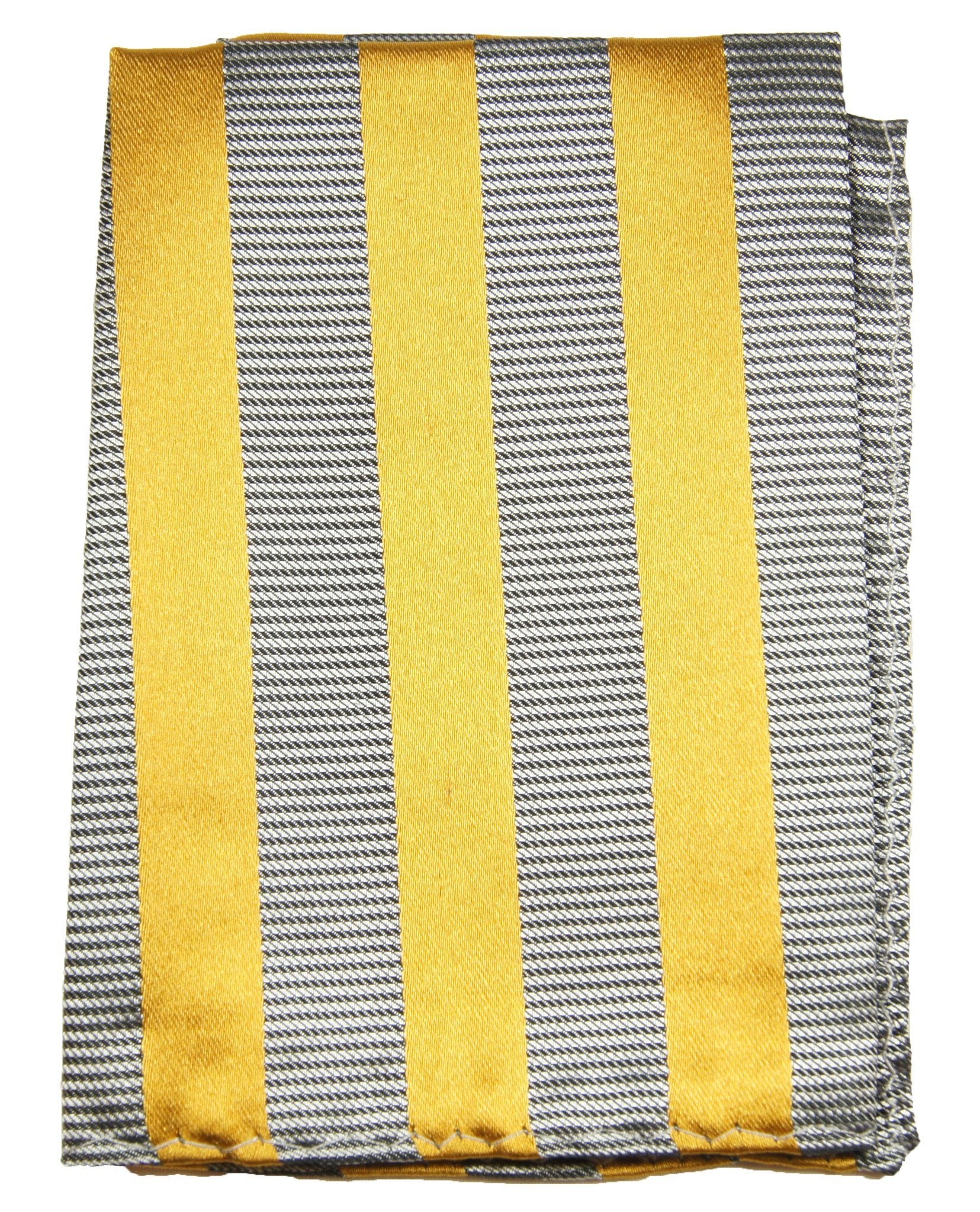 Indulge in the striking beauty of the Gold and Silver Striped Silk Pocket Square by Paul Malone. Crafted from 100%...