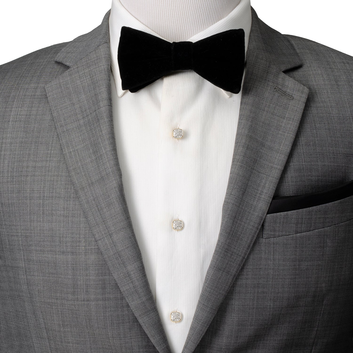 Perfect for your next formal event, these gold tone tuxedo studs set with pave Preciosa white crystals are a dazzling...