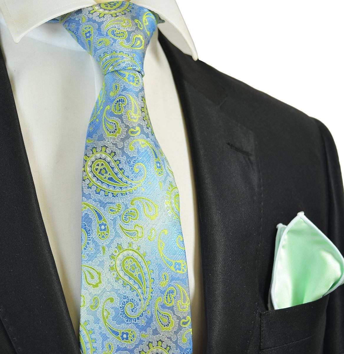 Green and Blue Paisley Men's Extra Long Tie and Pocket Square
