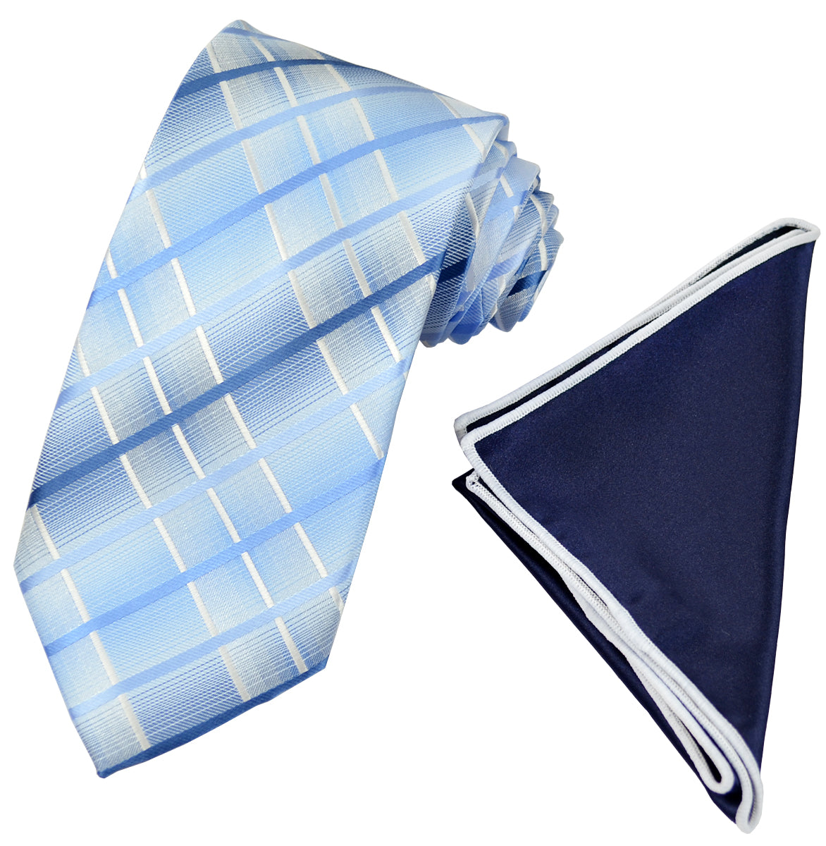Elevate your style with this Blue Plaid Men's Tie and Pocket Square set! Perfect for adding a touch of sophistication...