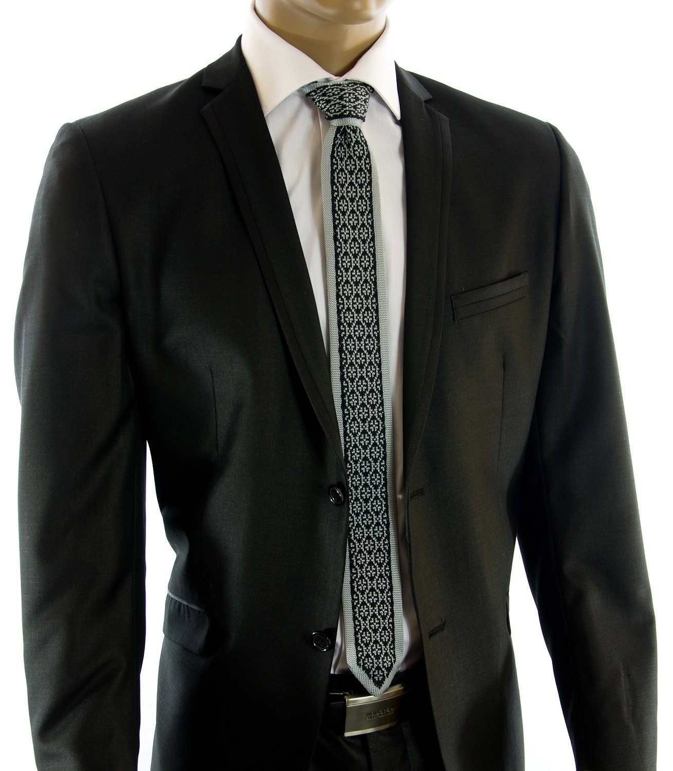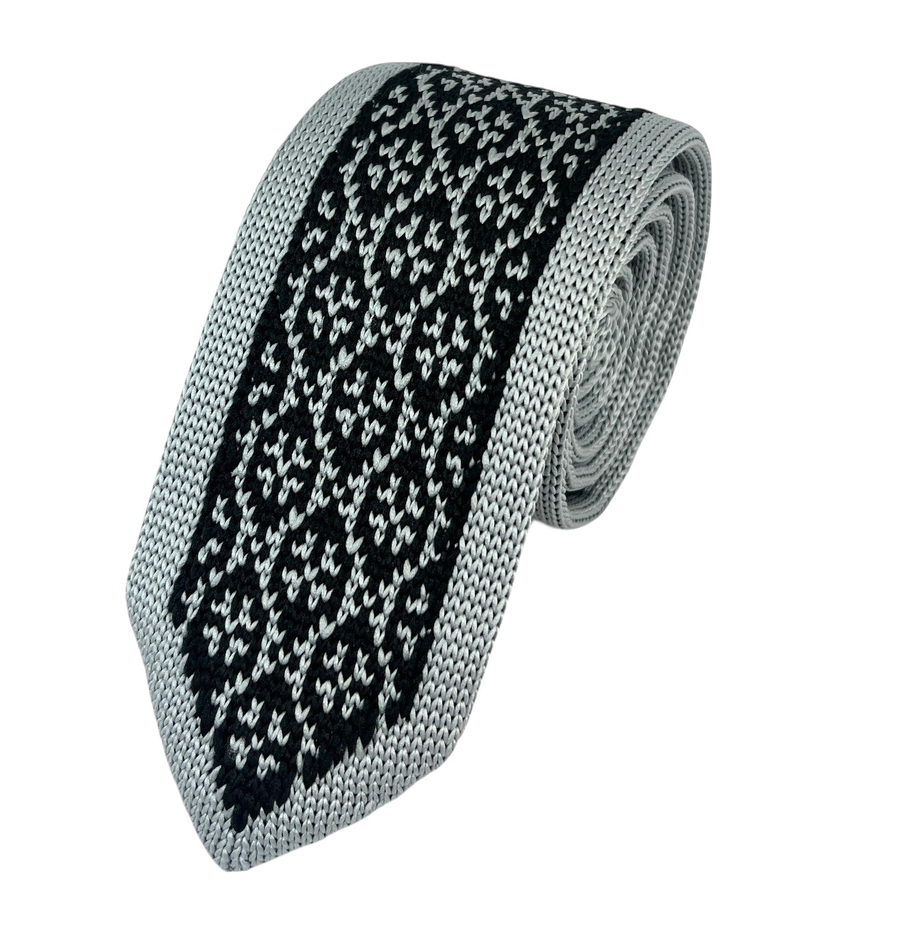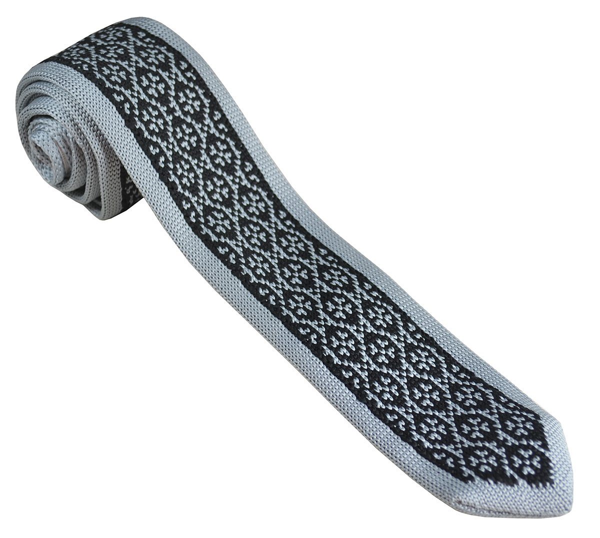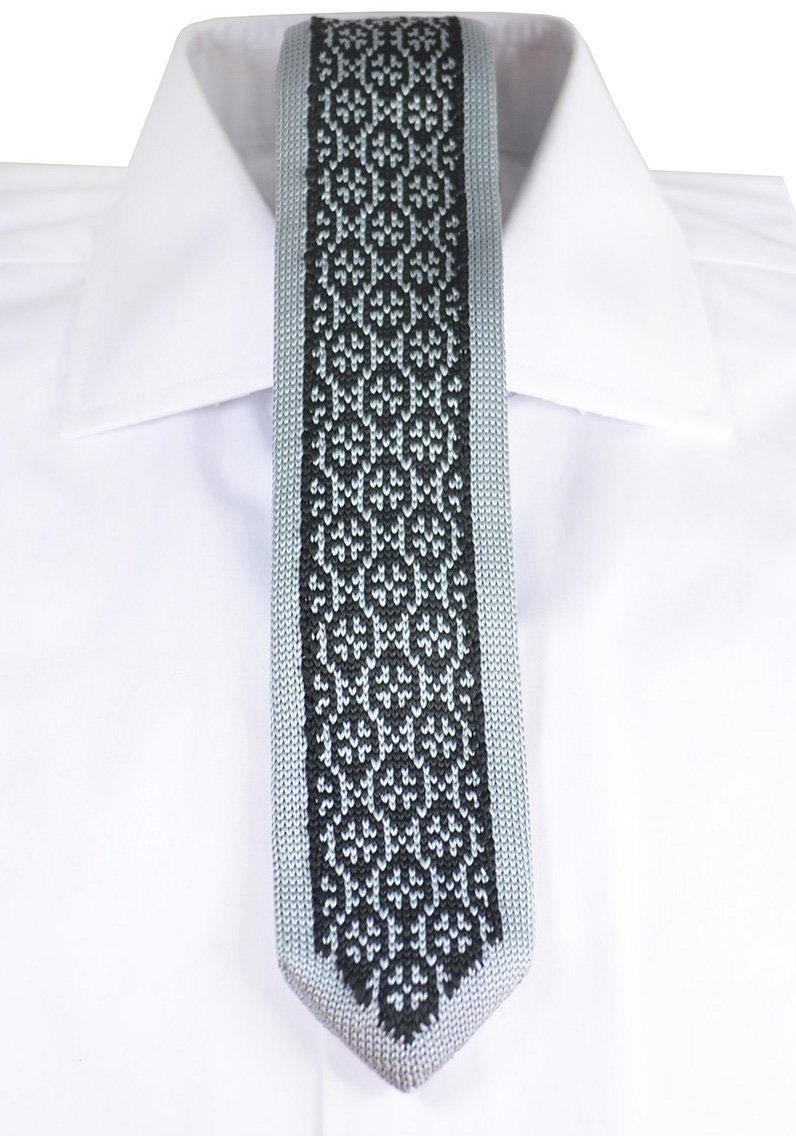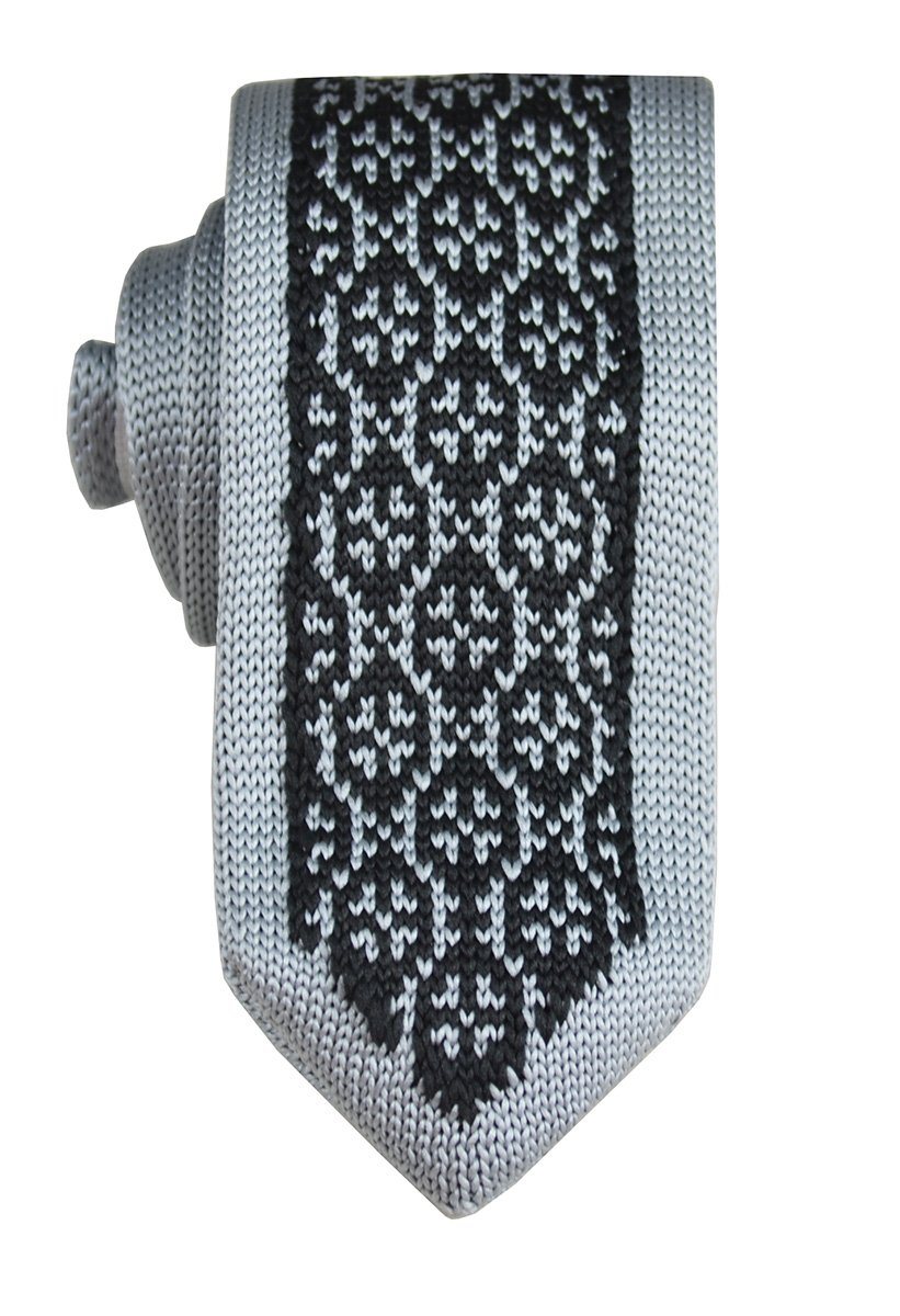 This Grey and Black Patterned Knit Tie, crafted by Paul Malone, is a must-have for any wardrobe. With its hand-made...