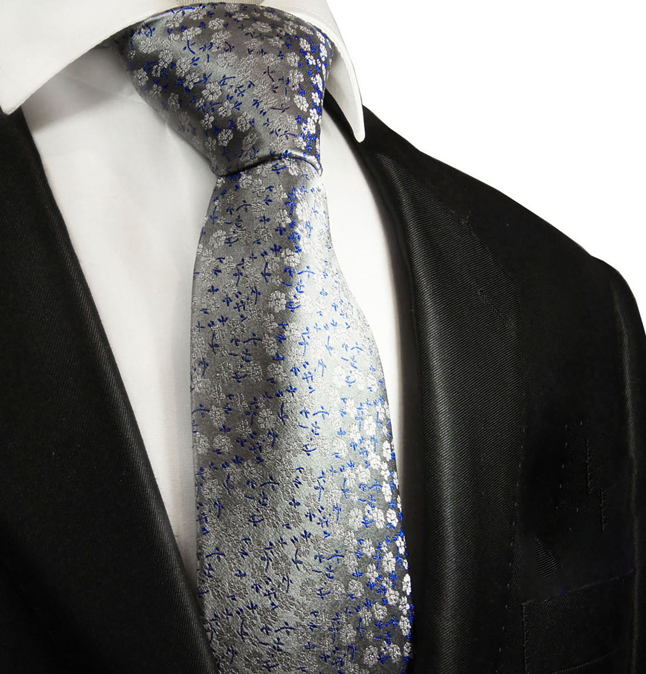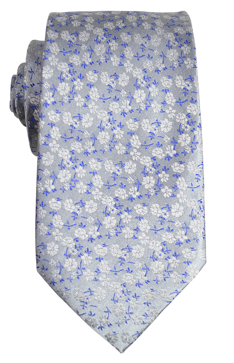 Silver Grey and Blue Floral Silk Necktie of the Red Line, Paul Malone's Premium Silk Tie Selection. Hand Made from...