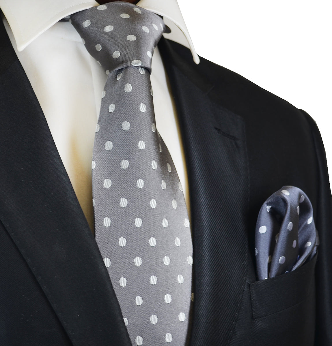 Grey with Silver Polka Dots Silk Tie and Accessories