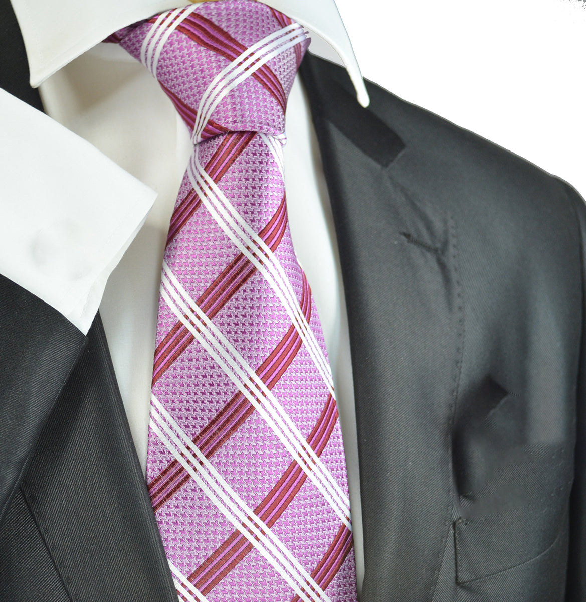 Plaid Hot Pink and White Silk Necktie by Paul Malone. Made of 100% pure mulberry silk, hand made and jacquard...