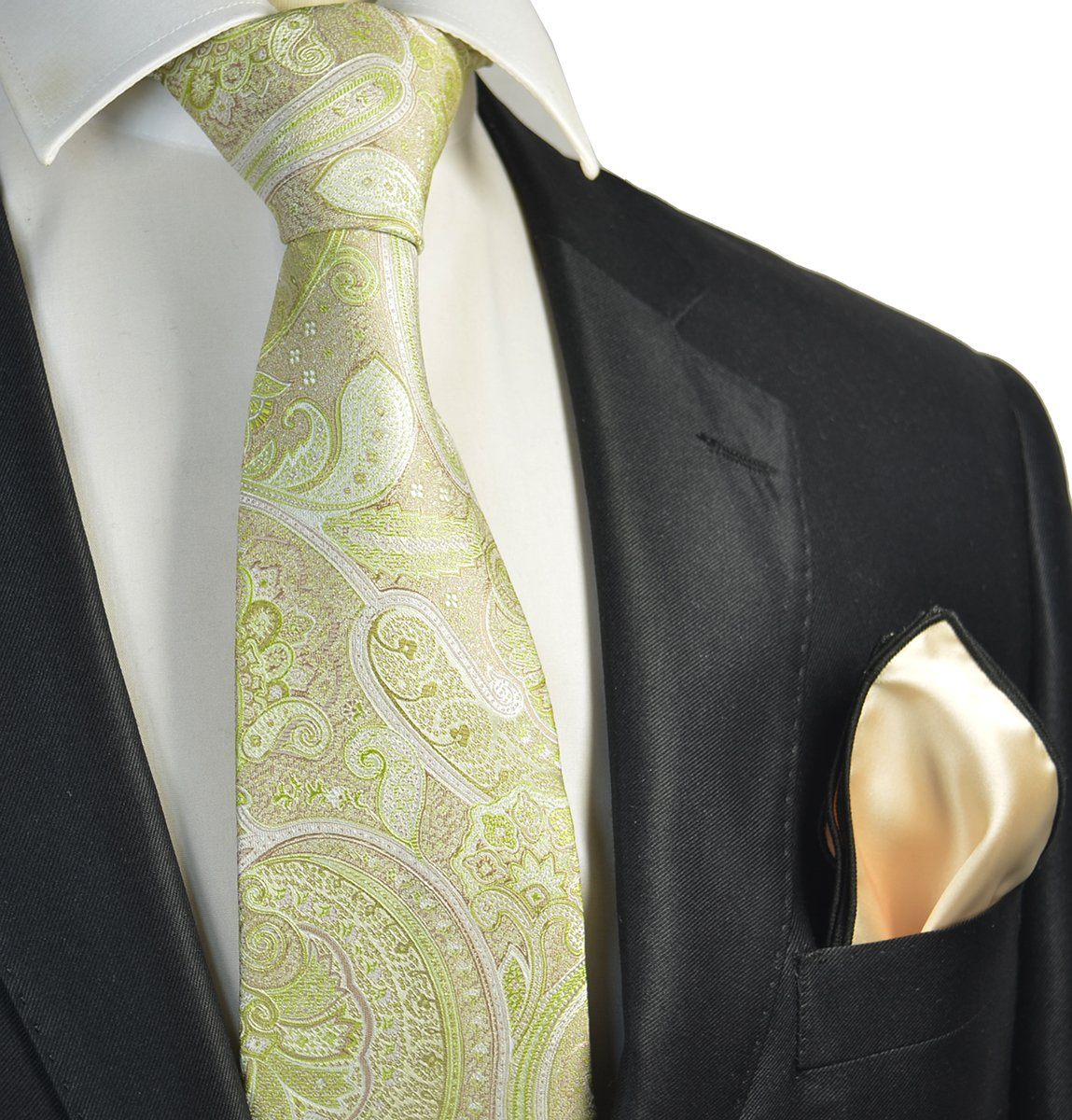 Lime Green Paisley Men's Tie and Pocket Square