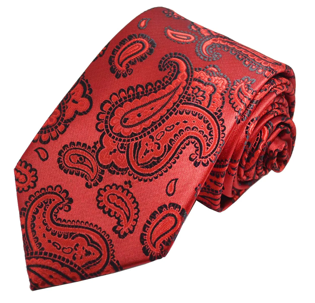 Luke is a Fashionable Paisley Design in unique Color Combinations. Hand Made of 100% Polyester. Contemporary Cut. Modern Design, Imported.