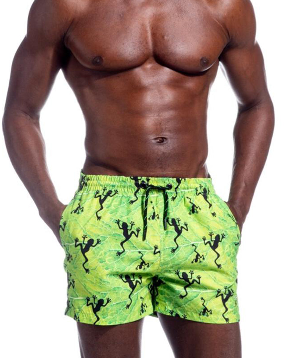 Cool as a frogs kiss. Summer Green Swim Trunks by Eight X . These trunks feature a 7in. inseam, lined...