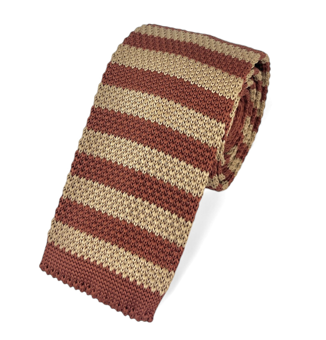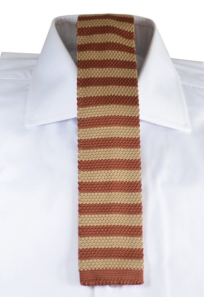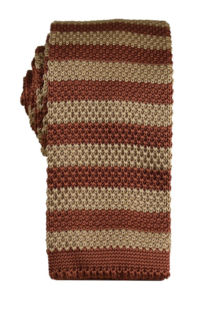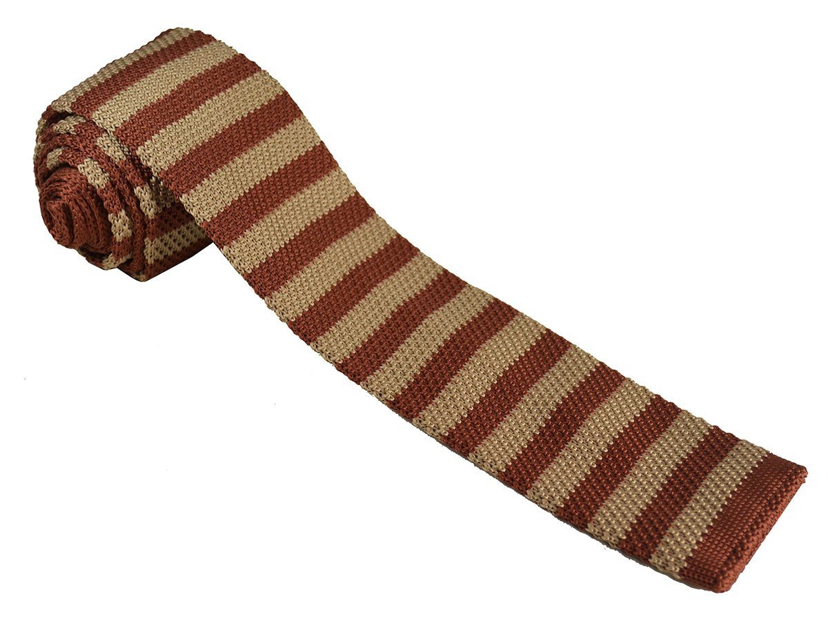 Transform your style with the Maroon and Gold Striped Knit Tie by Paul Malone, featuring a modern square tip. Handcrafted...