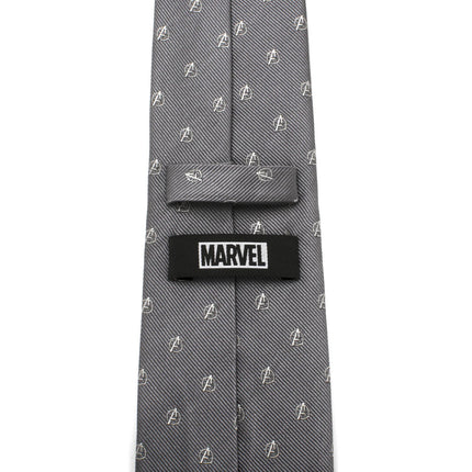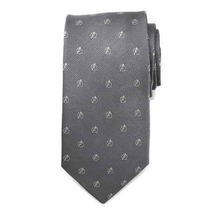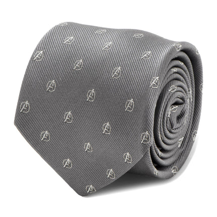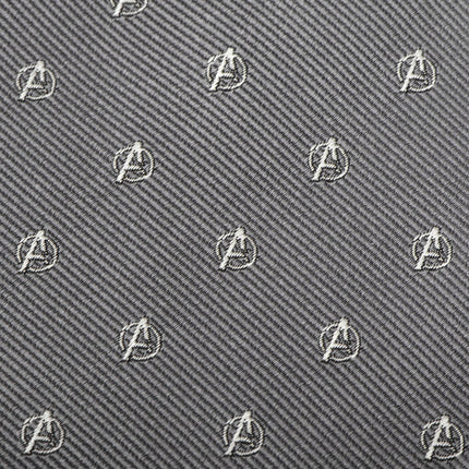 Assemble your crew's best wardrobe with this classic 100% silk gray tie. The Avenger's emblem appears scattered throughout, picked out...