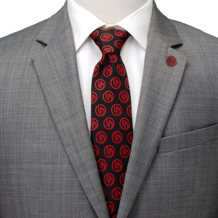 Marvel Daredevil Men’s Black Tie and Embossed Logo Lapel Pin Gift Set
