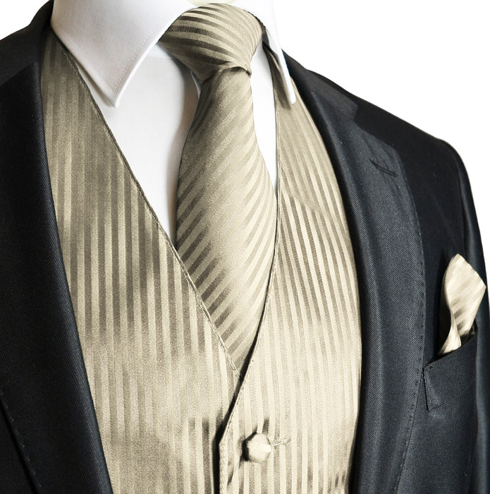 This sophisticated, striped Vesuvio Napoli suit vest set in champagne will add a touch of excitement to your formal attire....