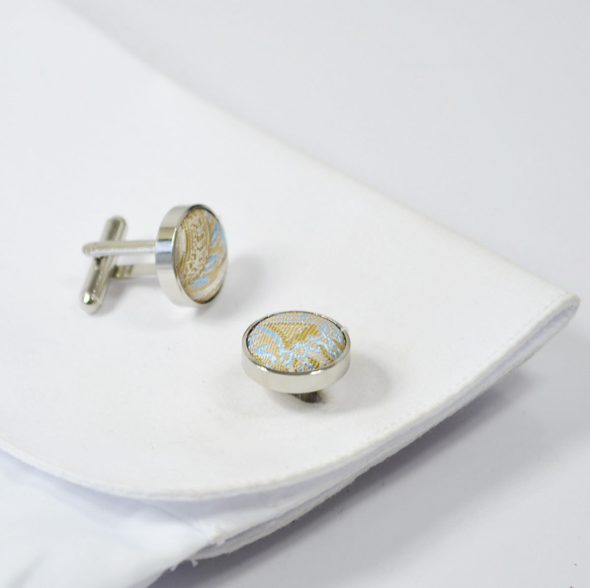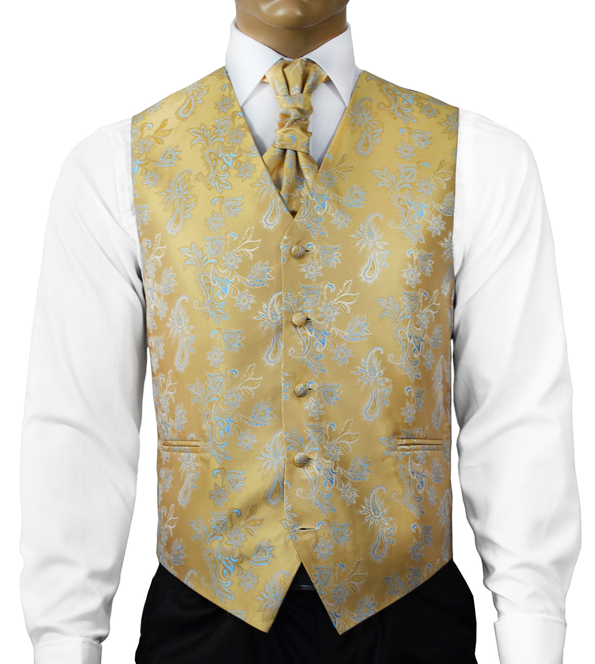 Exclusive Wedding Vest Set by Paul Malone in a Misted Yellow and Blue Floral Pattern. This 5pc. Set includes one...