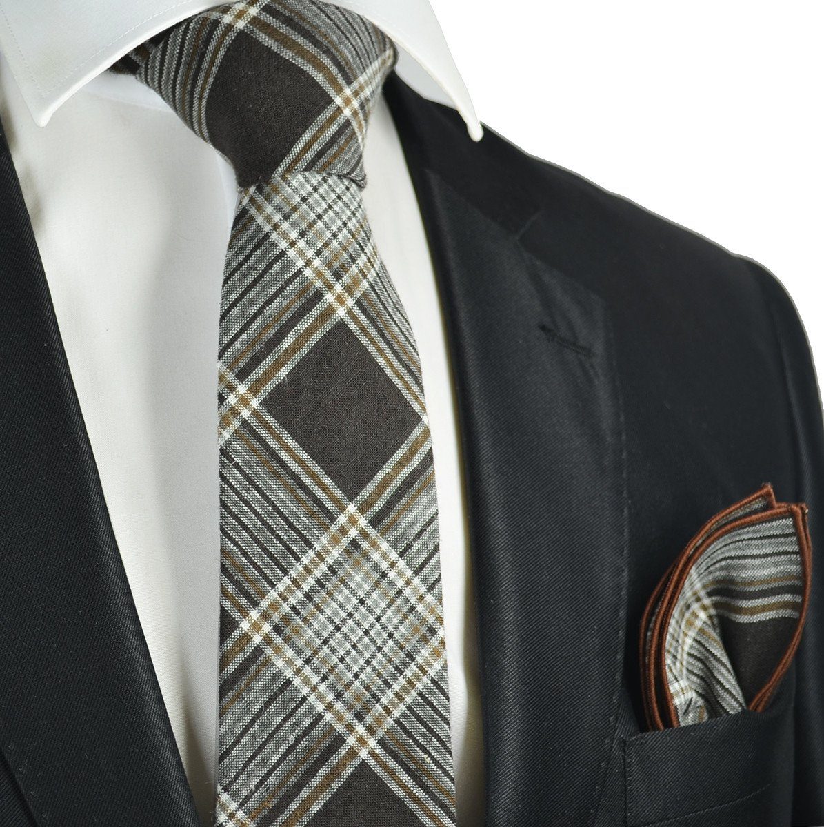 Mustang Brown Plaid Linen Tie and Pocket Square by Paul Malone