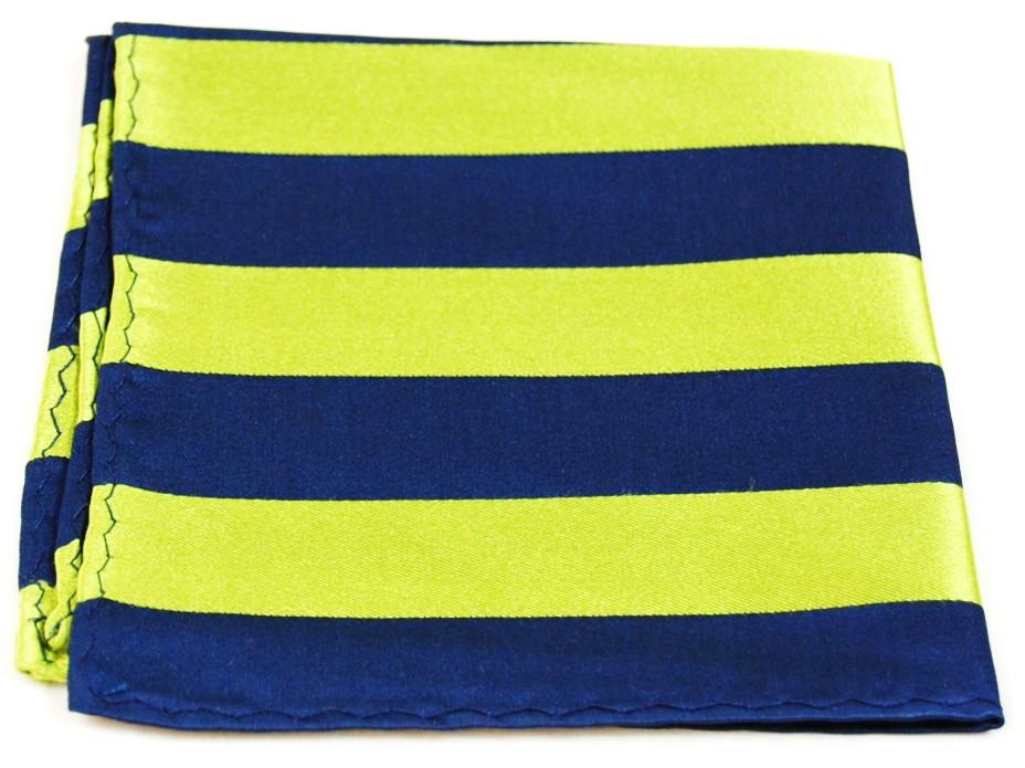 Navy and Green Striped Silk Pocket Square