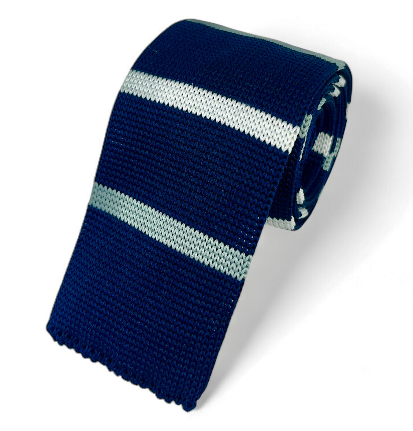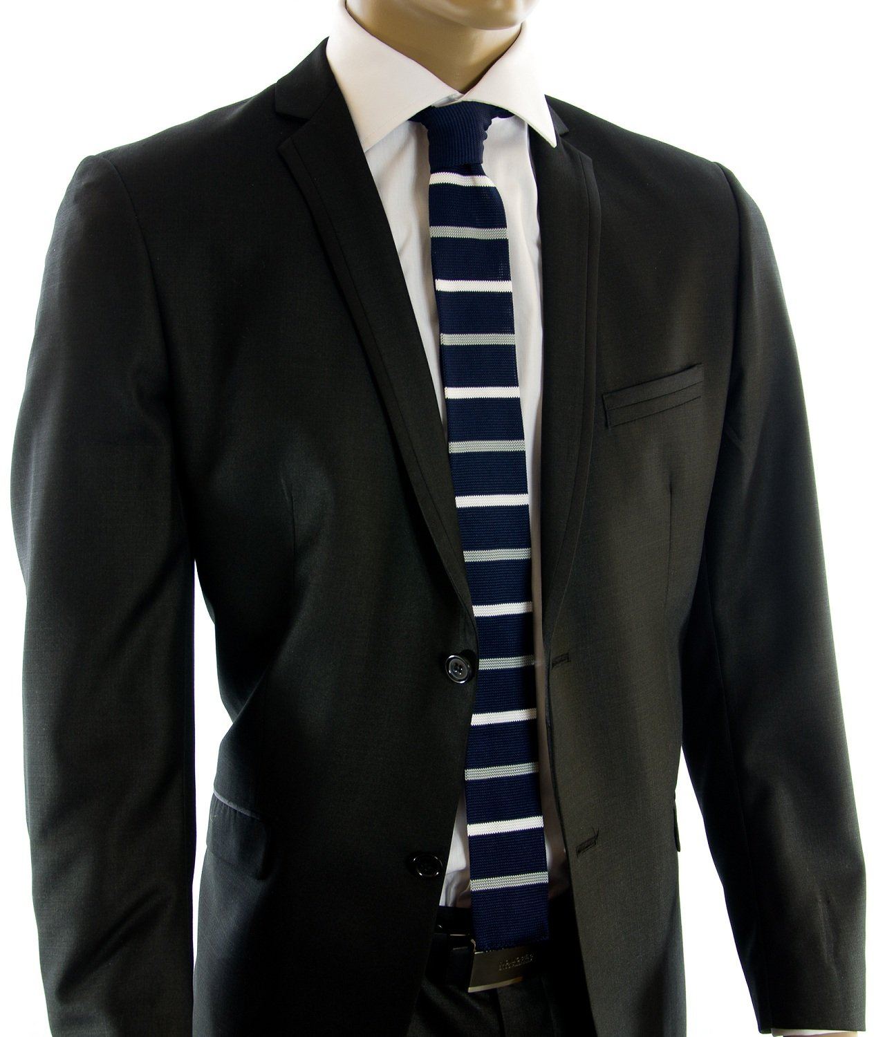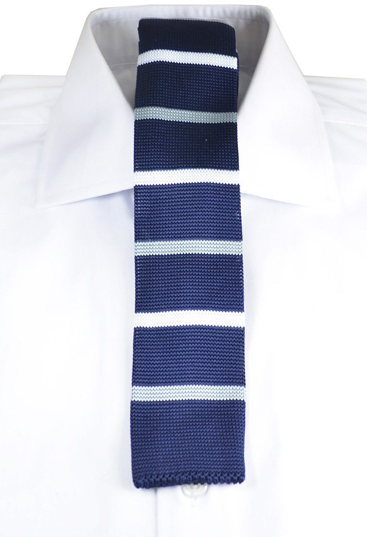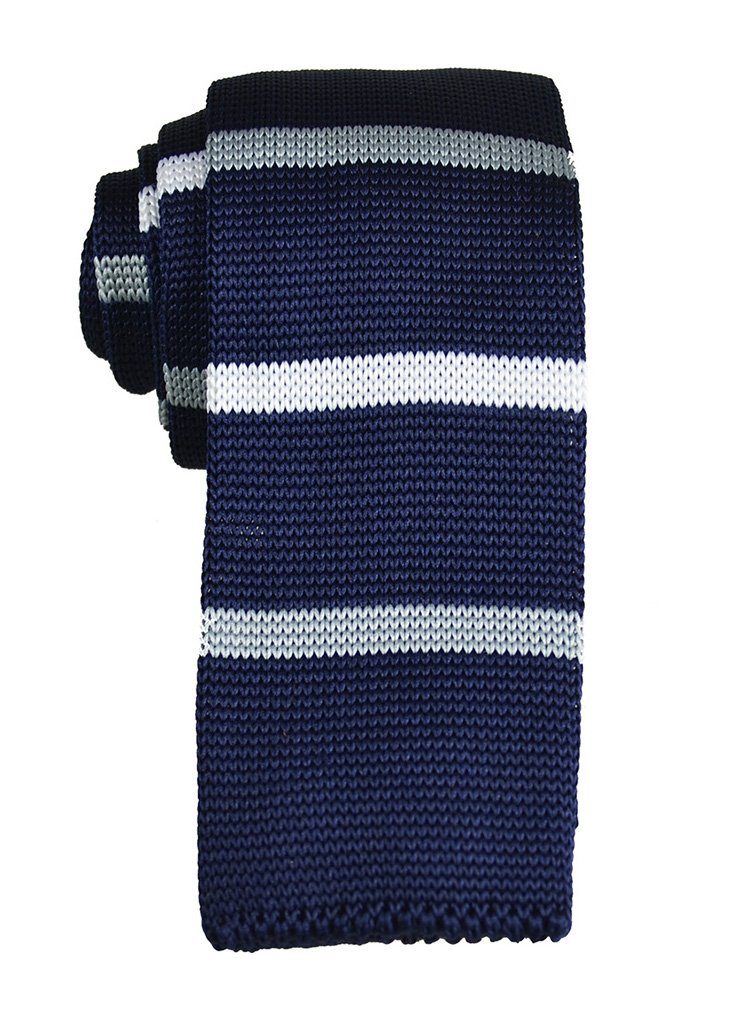 This contemporary, handcrafted tie by Paul Malone boasts a sophisticated combination of navy, white, and silver stripes. Its modern square...