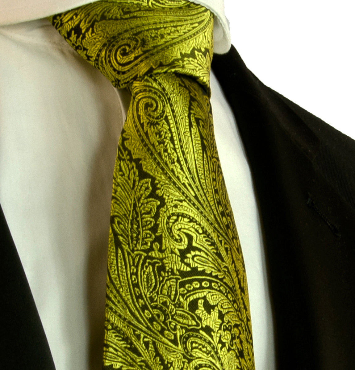 Elevate your style game with the Neon Yellow Paisley Mulberry Silk Necktie, a hand-crafted masterpiece woven with care. This jacquard...