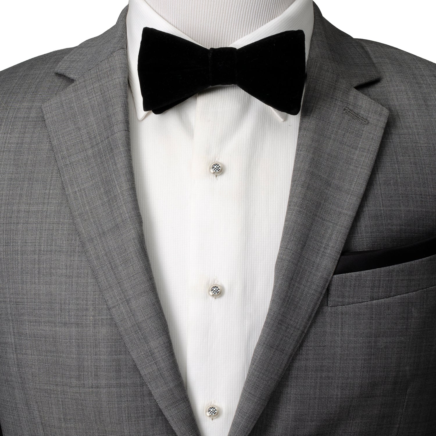 Finish your tuxedo look with our Onyx and Mother of Pearl Checker Step Studs. With semi-precious stones intricately placed in...