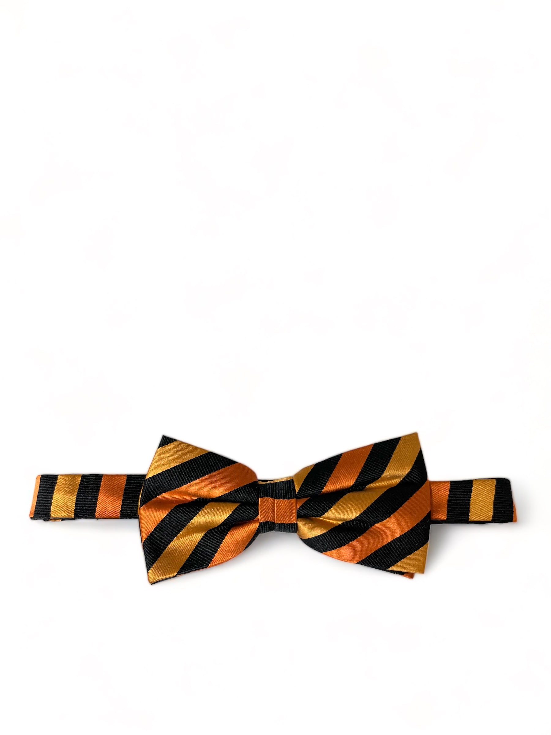 Orange and Black Striped Paul Malone Bow Tie. 100% Silk. Imported. Jacquard Woven, Hand Made, Size adjustable from neck size...