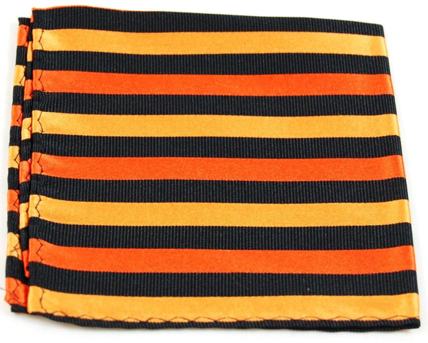 Indulge in the luxurious and captivating design of the Orange and Black Striped Silk Pocket Square by Paul Malone. Crafted from 100% pure silk, this pocket square exudes sophistication and elegance. With its jacquard weaving and handcrafted details, it is the perfect accessory to elevate any outfit. Imported for your pleasure.