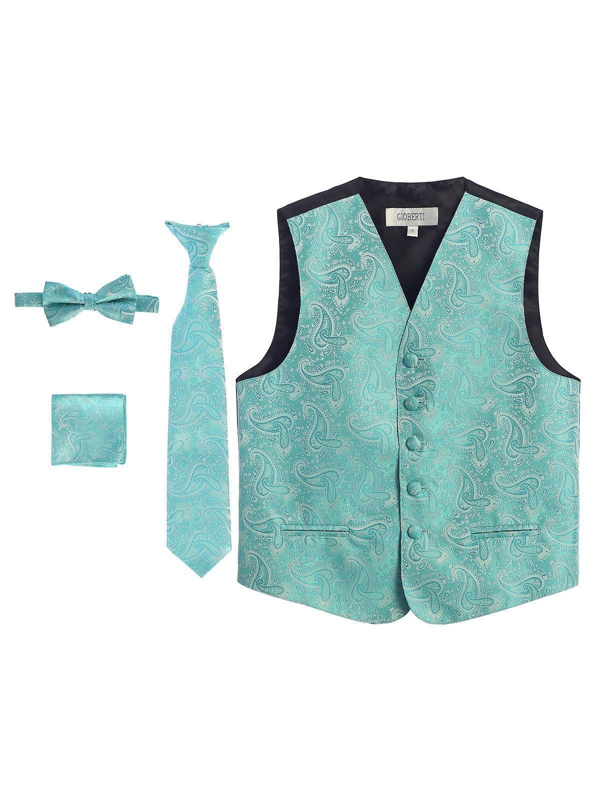 Formal Paisley Tuxedo Vest Set, including Full Back Boys Tuxedo Vest, Boys Clip-on Tie, Boys Clip-on Bow Tie and matching...