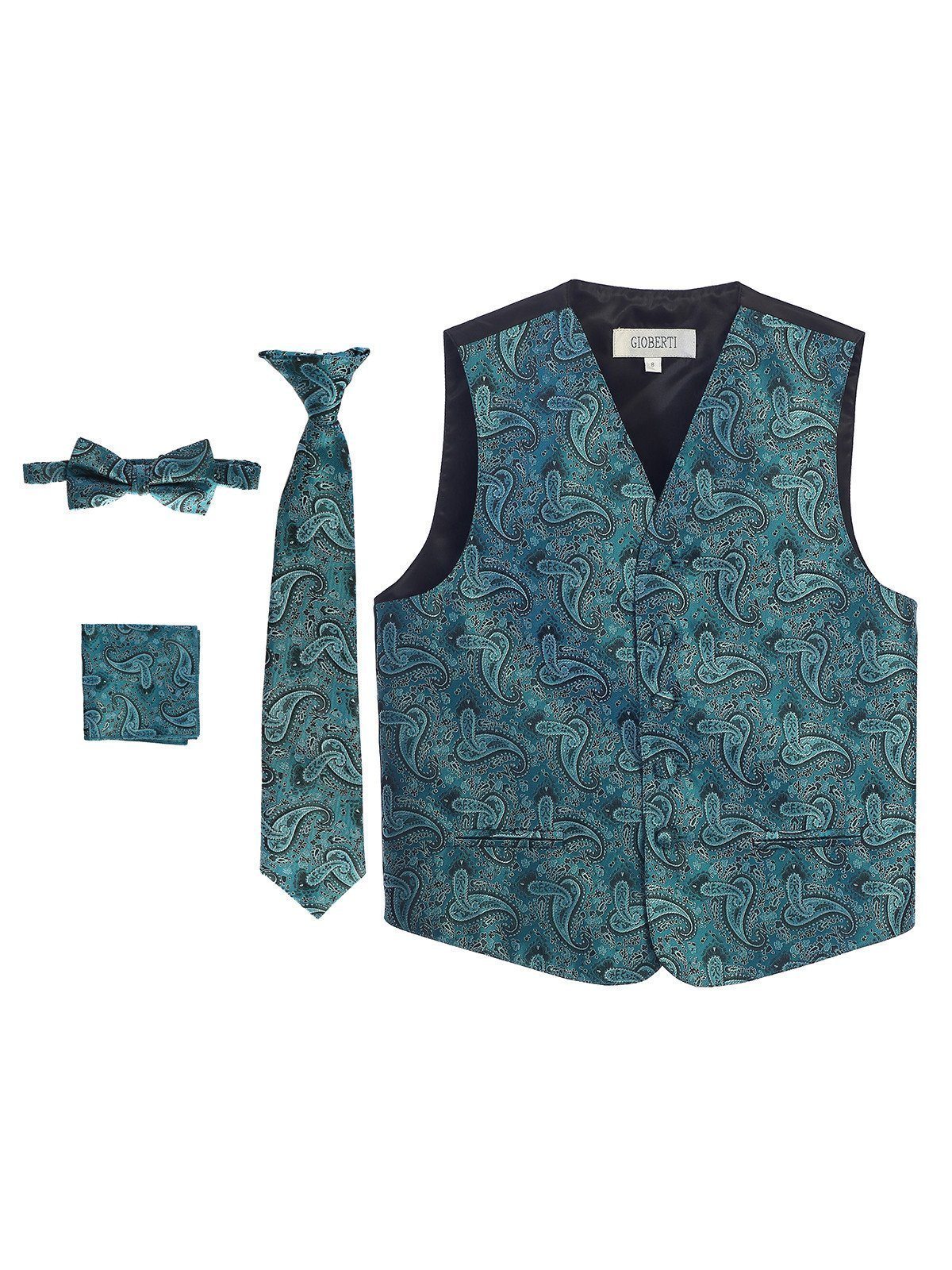 Formal Paisley Tuxedo Vest Set, including Full Back Boys Tuxedo Vest, Boys Clip-on Tie, Boys Clip-on Bow Tie and matching...