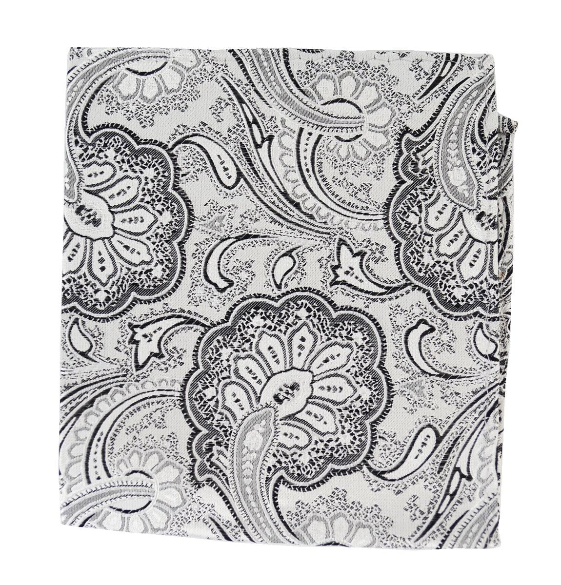 Elevate your fashion game with the stunning Paul Malone Silver and Grey Paisley Silk Pocket Square. This exquisite piece features...