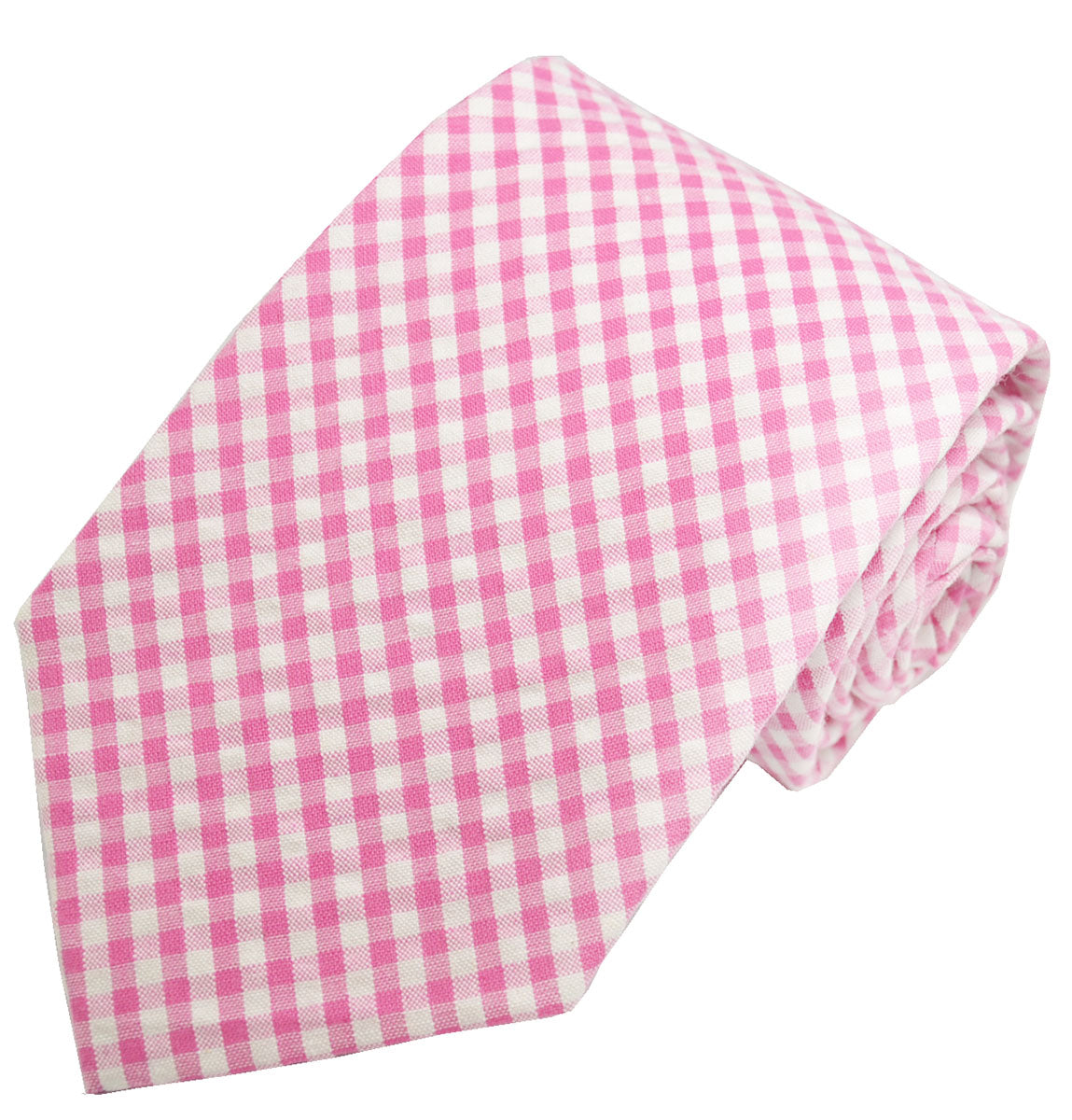 "This men's necktie is crafted in a charming hot pink and white gingham pattern. Made from 100% cotton, it boasts...