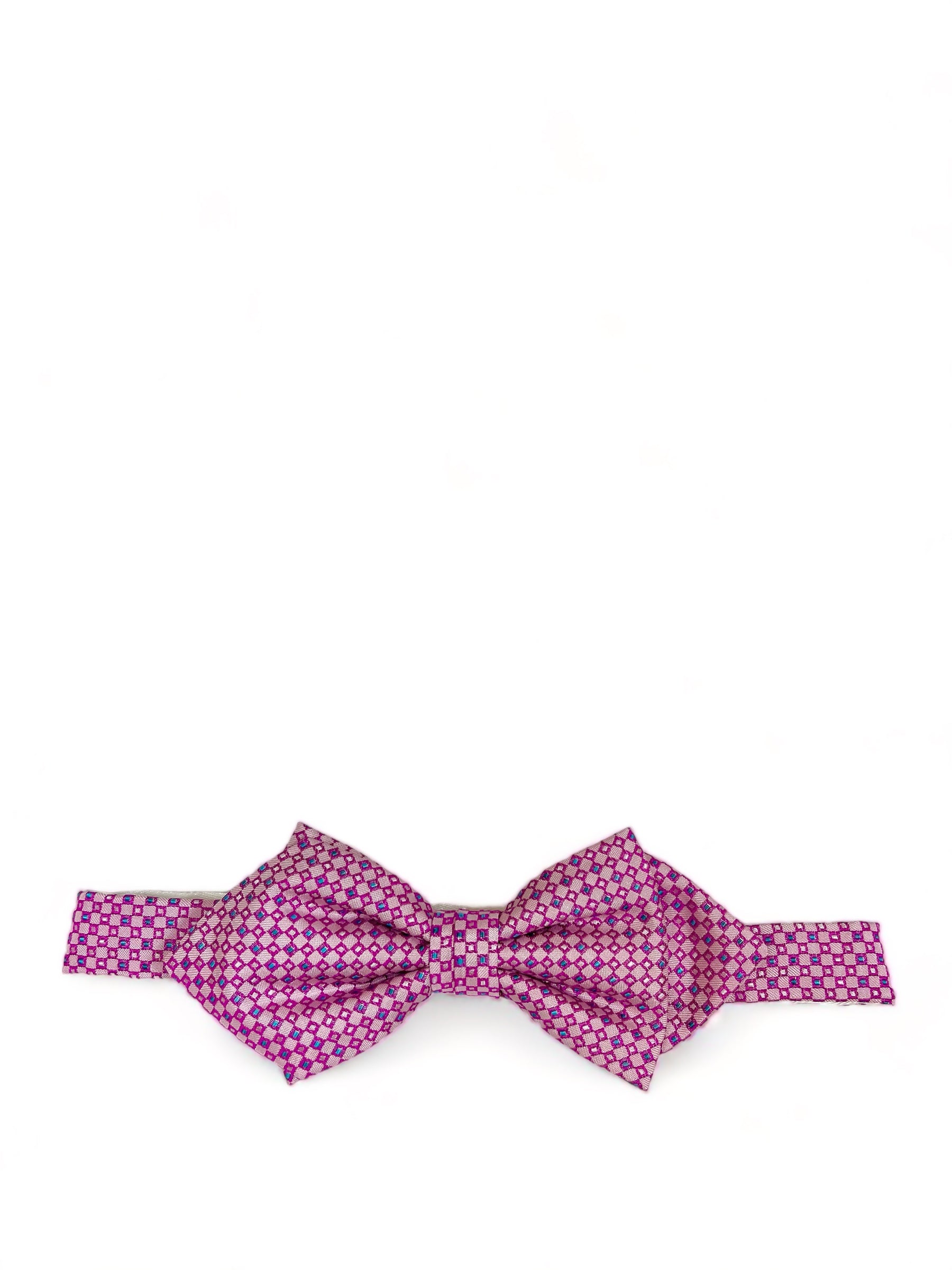 Crafted from sumptuous 100% pure silk jacquard fabric, this pink diamond-shaped bow tie radiates a luminous quality and is braced...