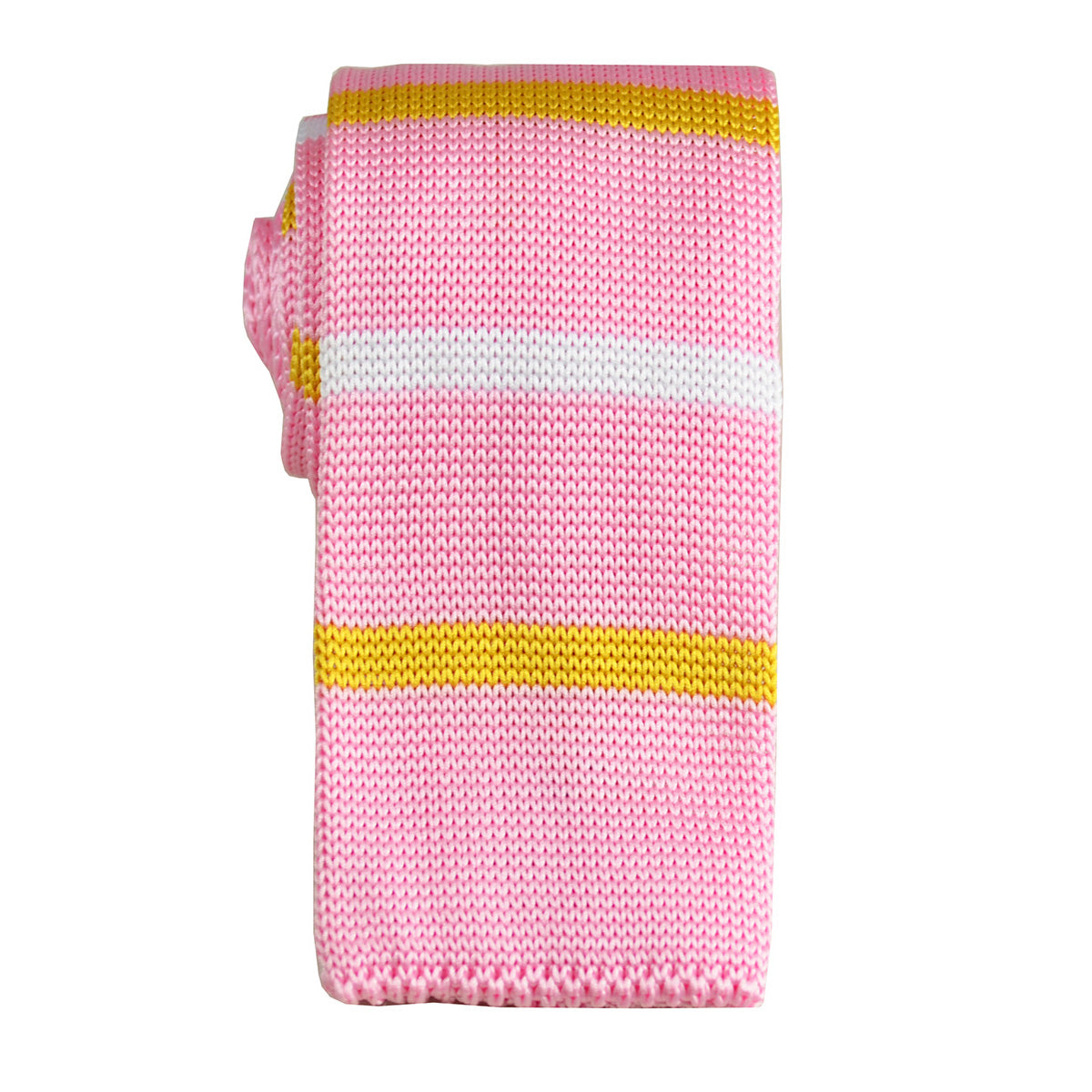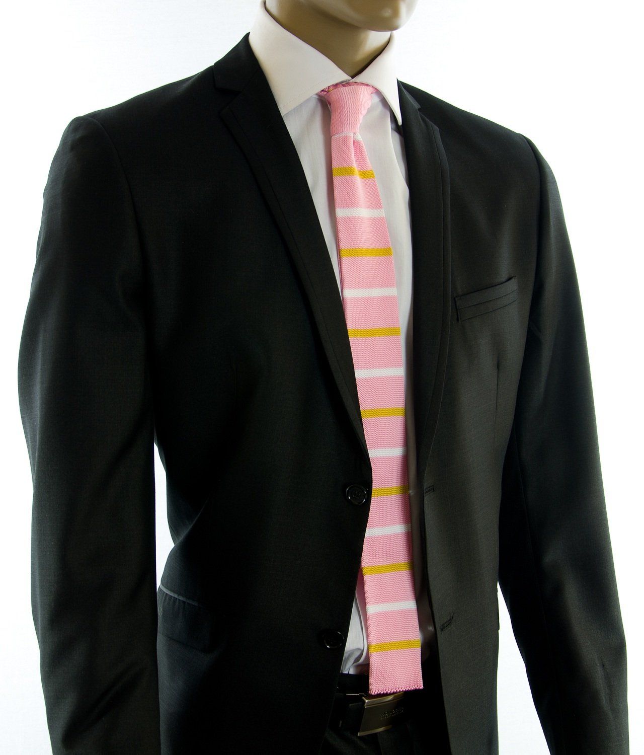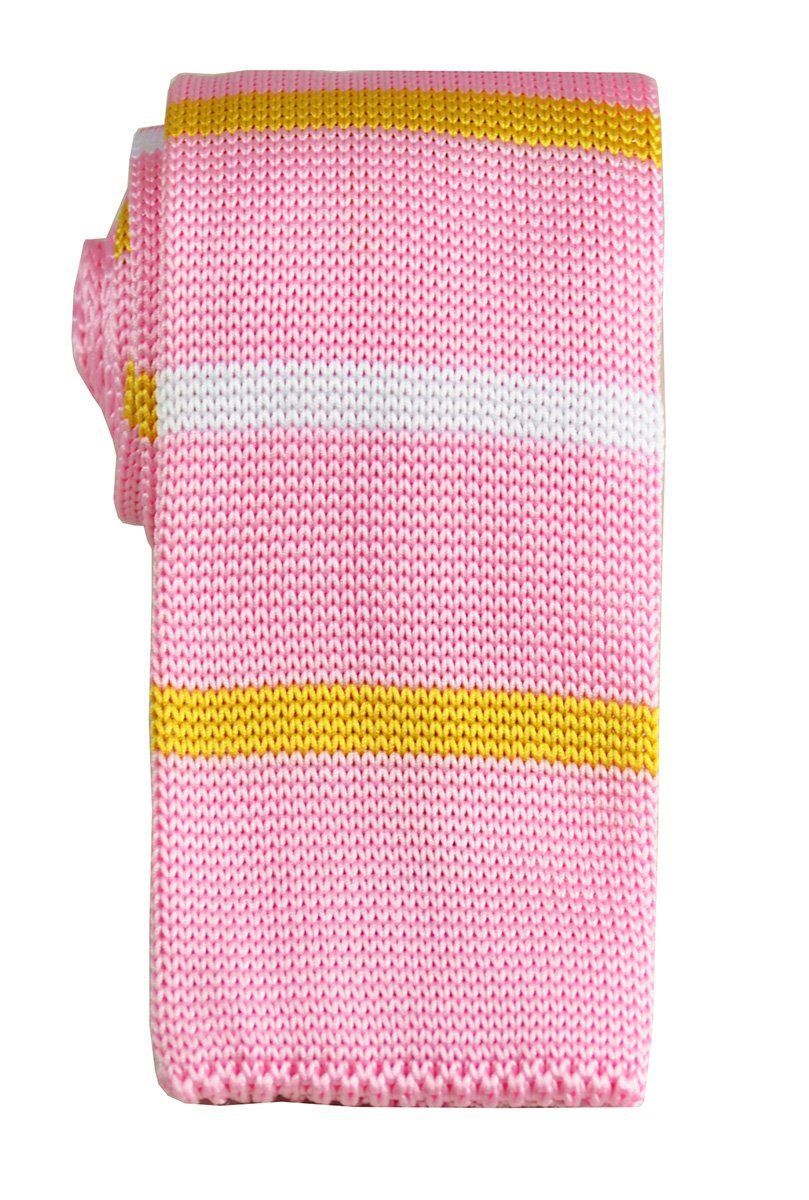 This modern, hand-crafted Pink and White Striped Knit Tie by Paul Malone boasts a unique square tip and is made...