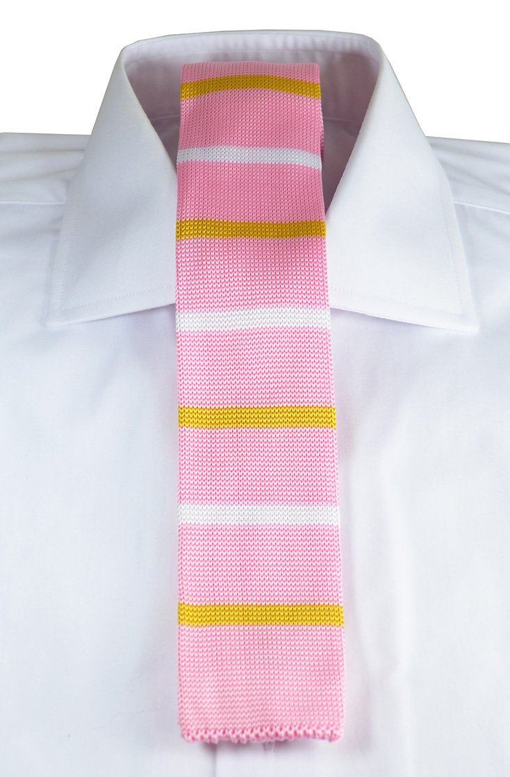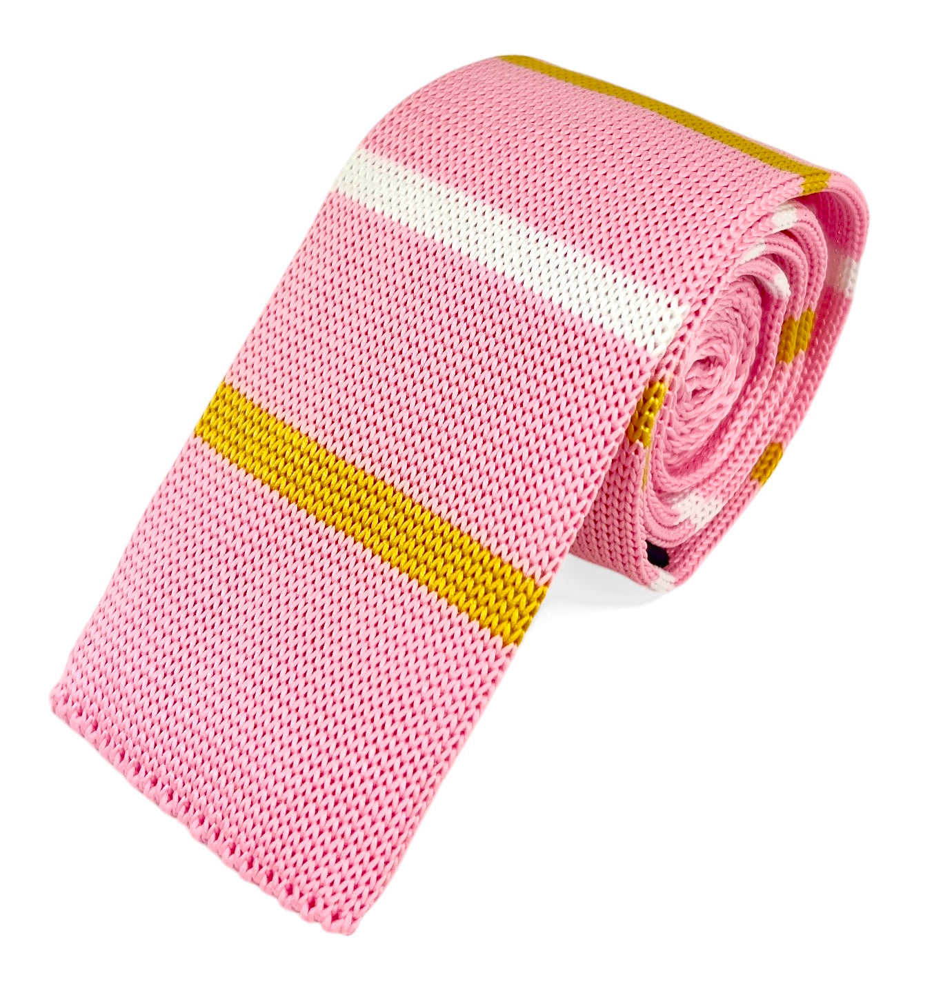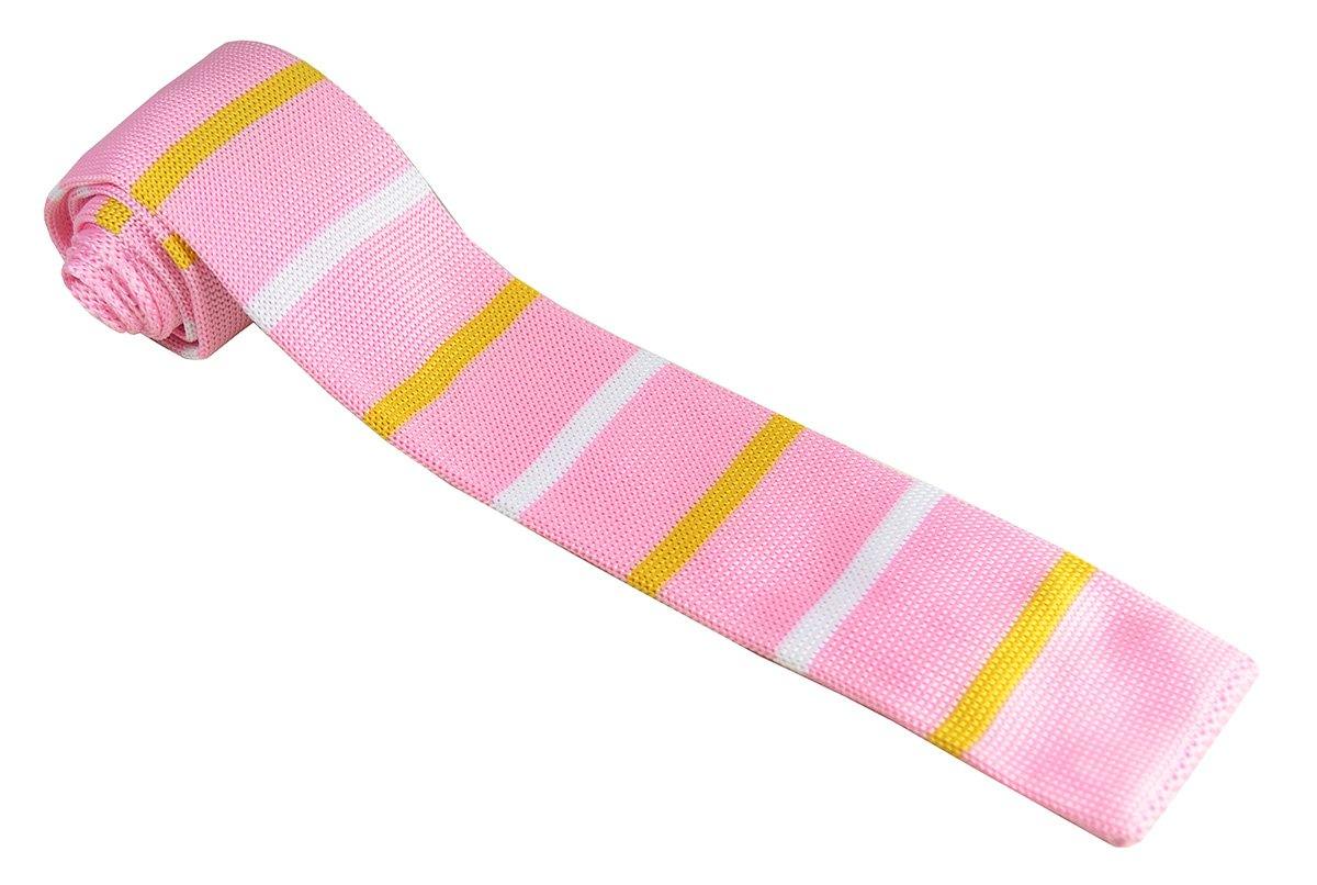 This modern, hand-crafted Pink and White Striped Knit Tie by Paul Malone boasts a unique square tip and is made...