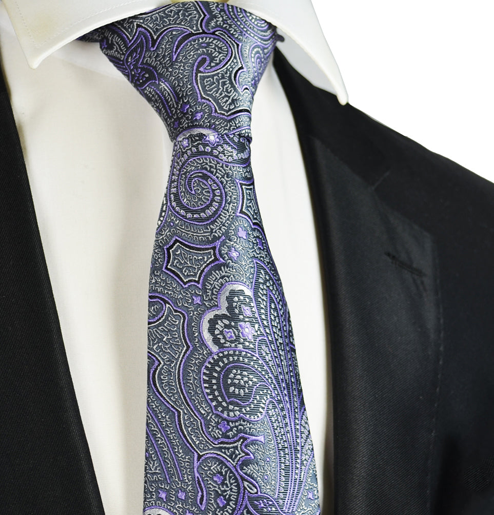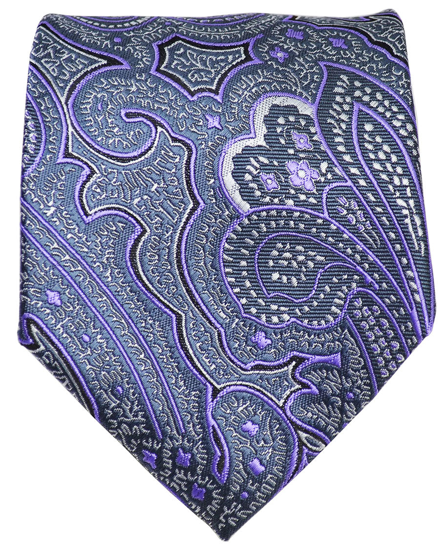 Transform your look with the opulent Purple and Grey Paisley Men's Necktie by Paul Malone. Crafted from 100% microfiber and...
