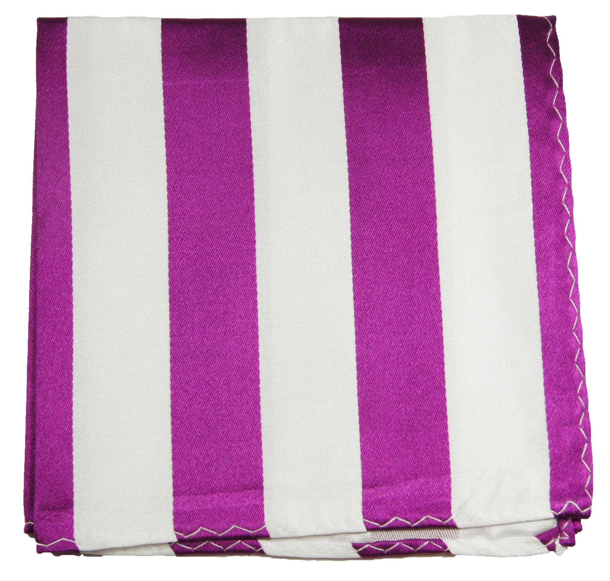Discover the exquisite beauty of our Purple and White College Stripe Paul Malone Silk Pocket Square. Crafted with 100% pure...