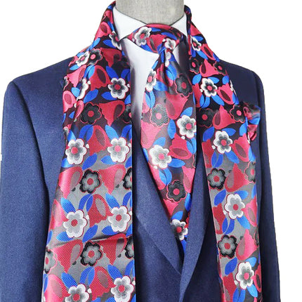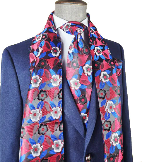 Red and Blue Floral 100% Silk Tie, Scarf and Pocket Square