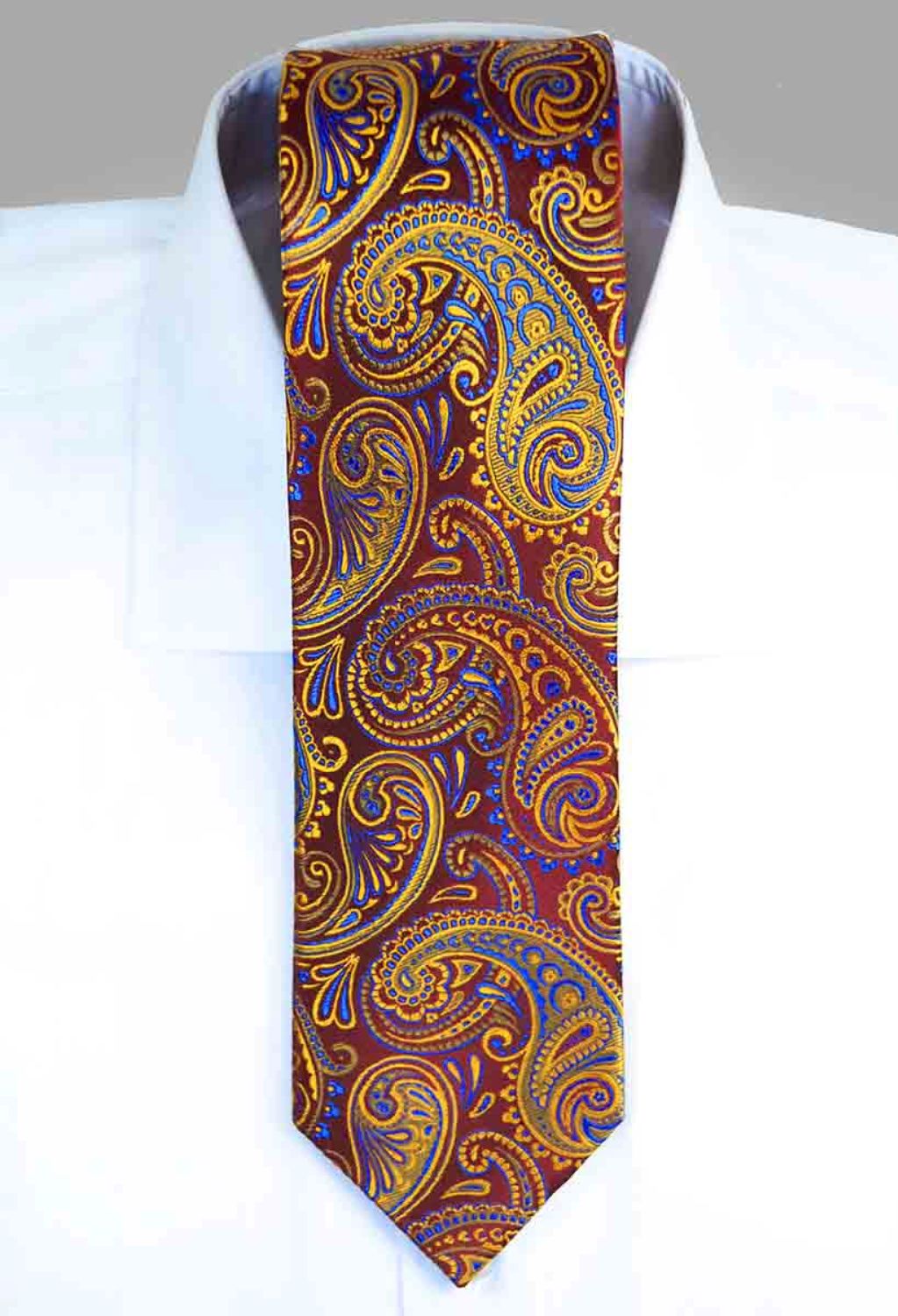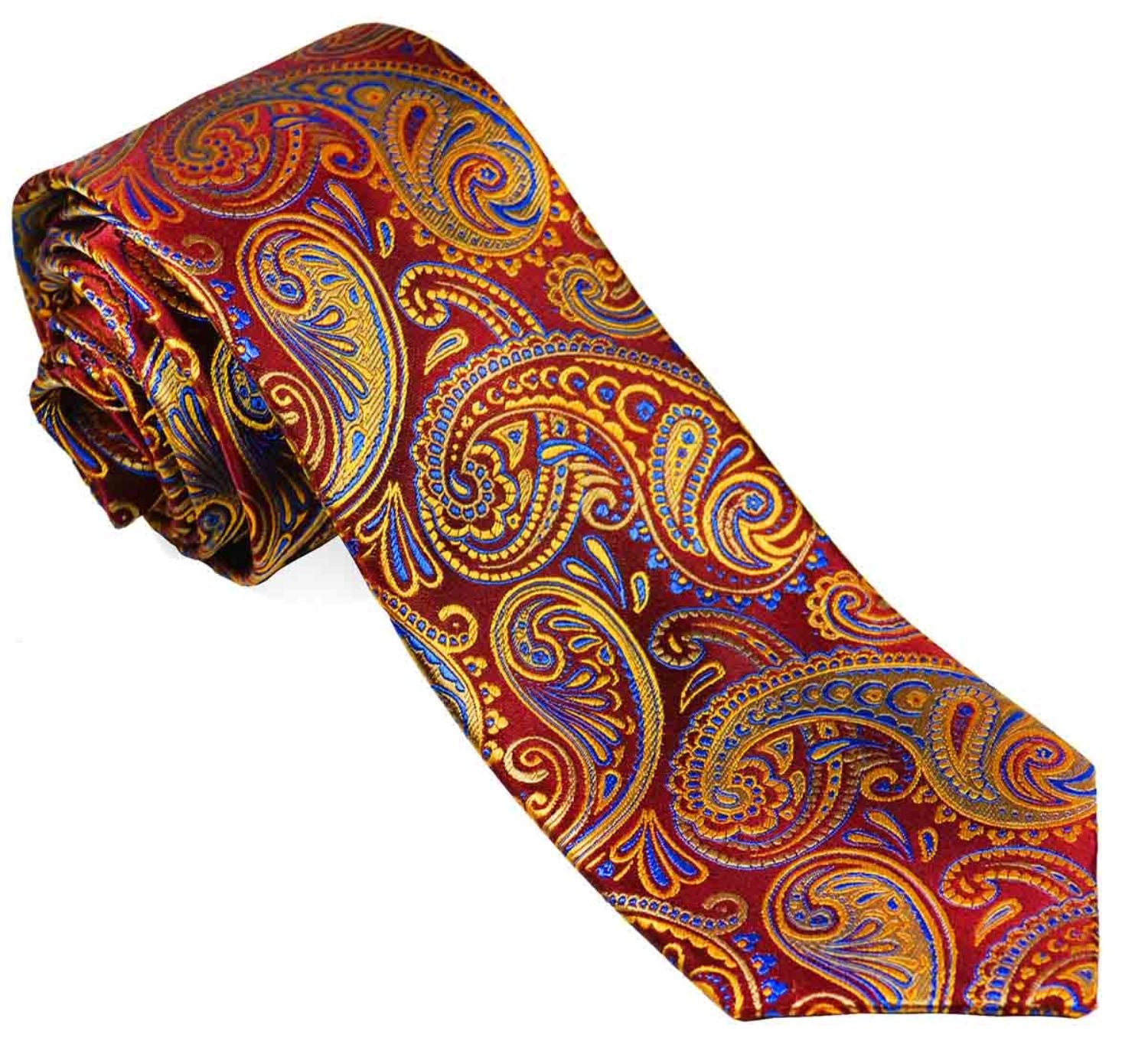 Hand Made Silk Necktie by Paul Malone in Red and Gold Paisley. This Men's Tie is Made of 100% pure...
