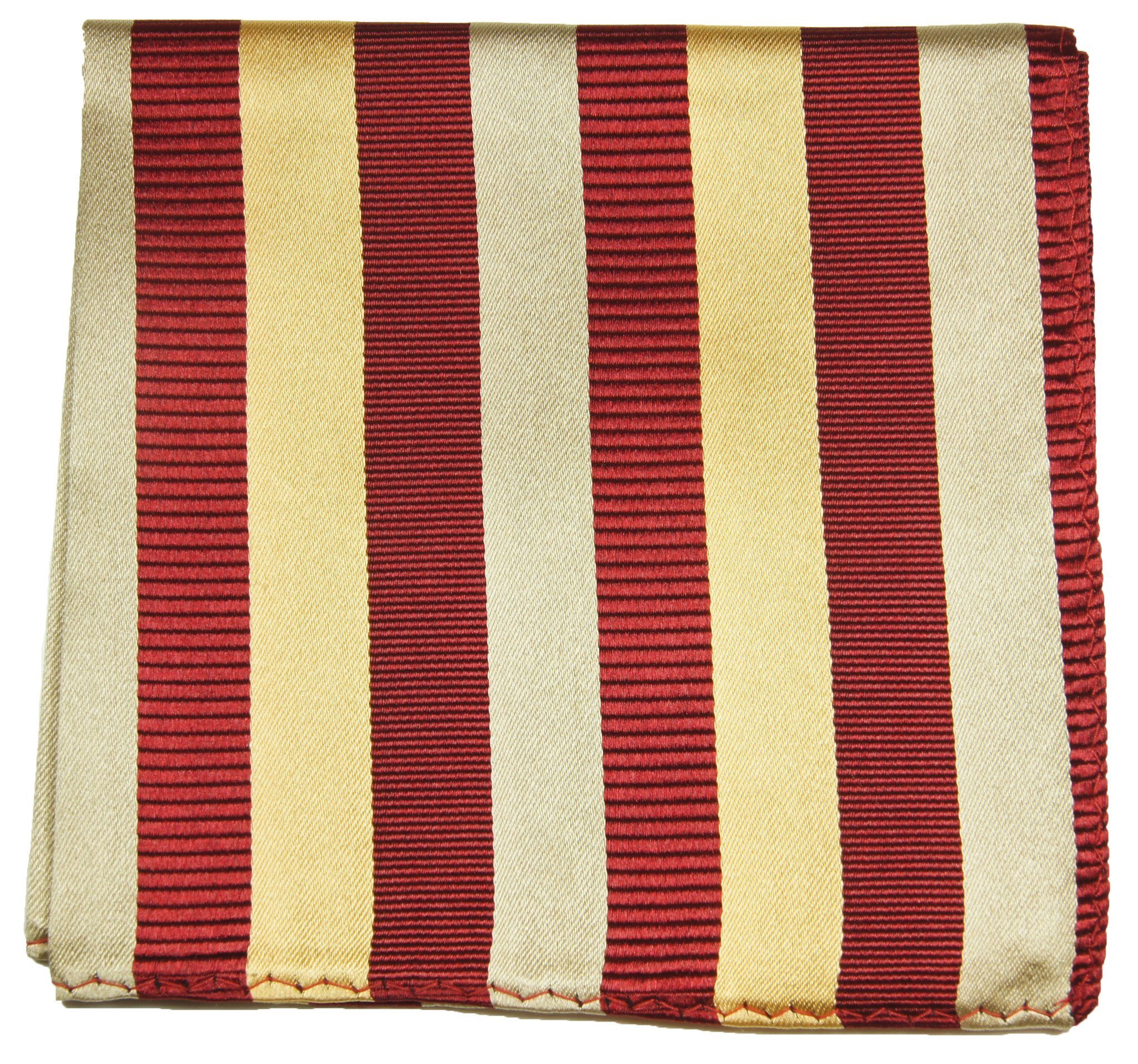 Ignite your style with the luxurious Exclusive Red and Gold Striped Silk Pocket Square by Paul Malone. Crafted from 100%...
