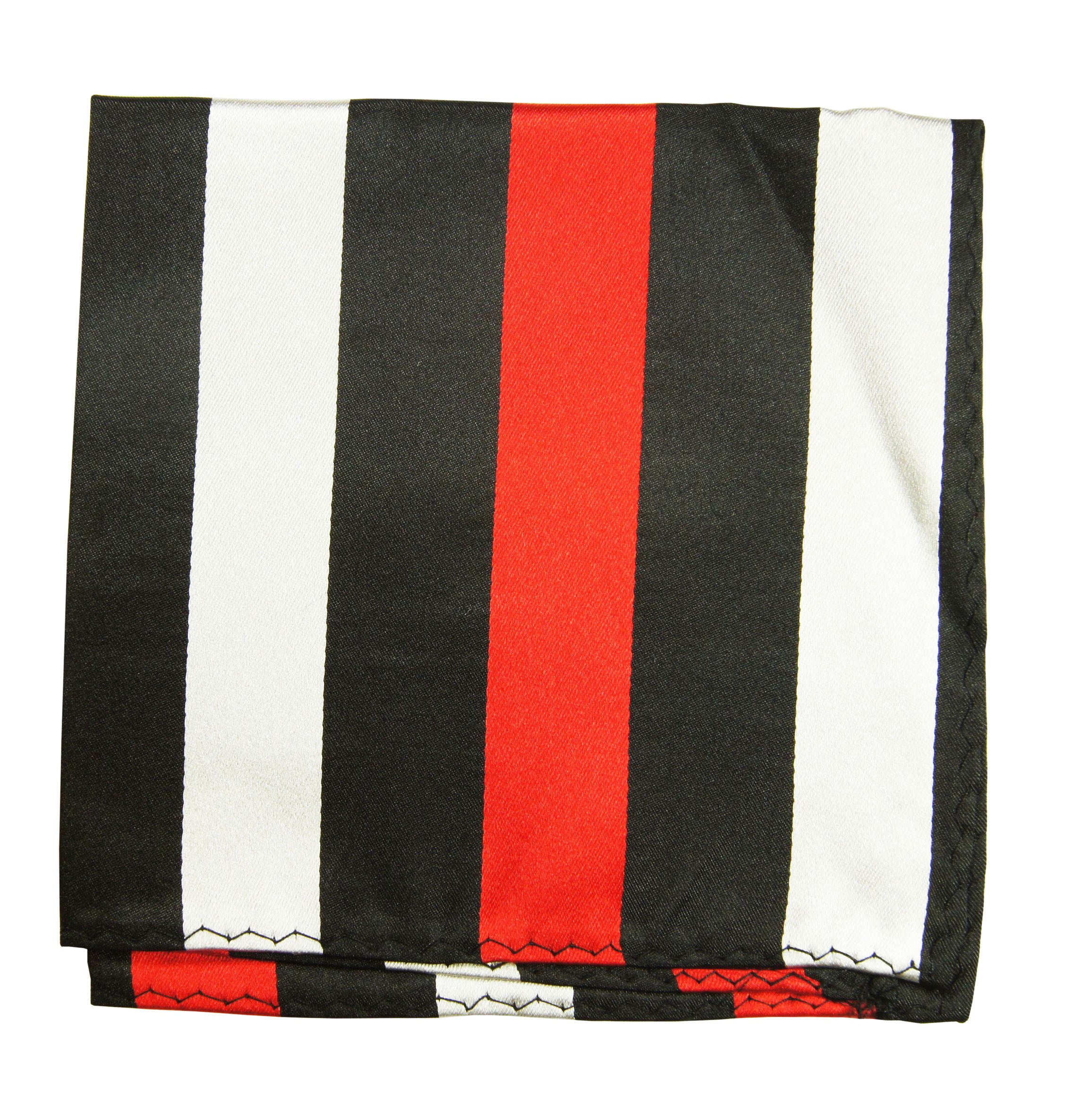Experience luxury and style with our Red, Black, and Silver Striped Silk Pocket Square. Made from the finest 100% pure...