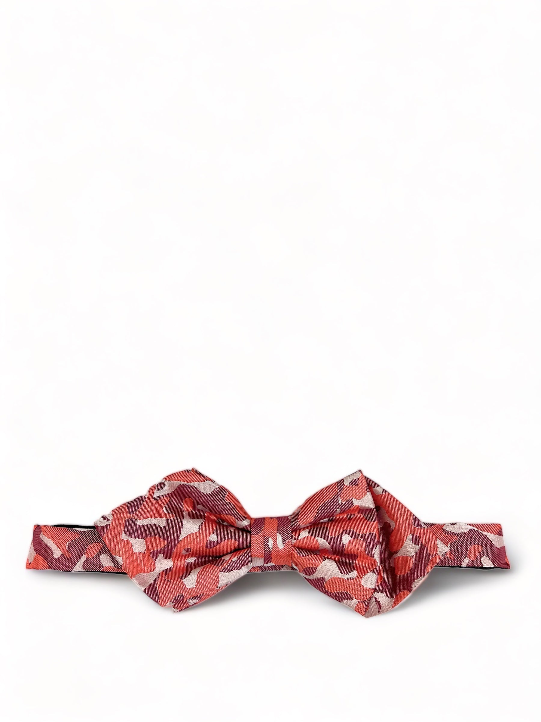 This red camo diamond shaped bow tie is hand made of 100% pure silk, jacquard woven. Imported. Size adjustable from...