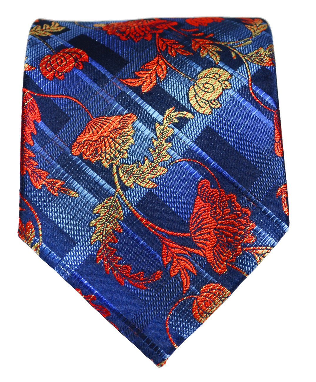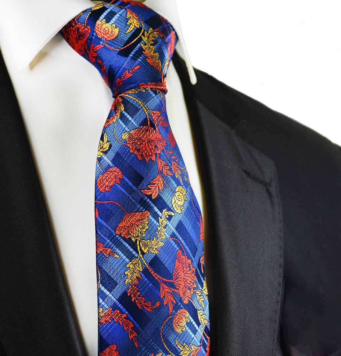 Red on Blue Floral Silk Necktie of the Red Line, Paul Malone's Premium Silk Tie Selection. Hand Made from 100% Silk, jacquard woven and self tipped. Imported. Tackle any adventure with the sophisticated style and precision of this Red on Blue Floral Necktie! Paul Malone’s signature collection offers unique quality and unbeatable flair that will help you take on any challenge with boundless confidence.