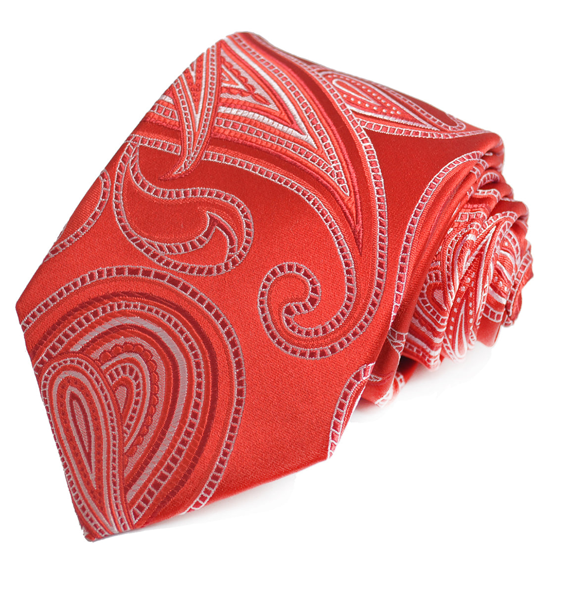 Classic Ribbon Red Paisley Silk Necktie & Pocket Square of the Red Line, Paul Malone's Premium Silk Tie Selection. Hand...