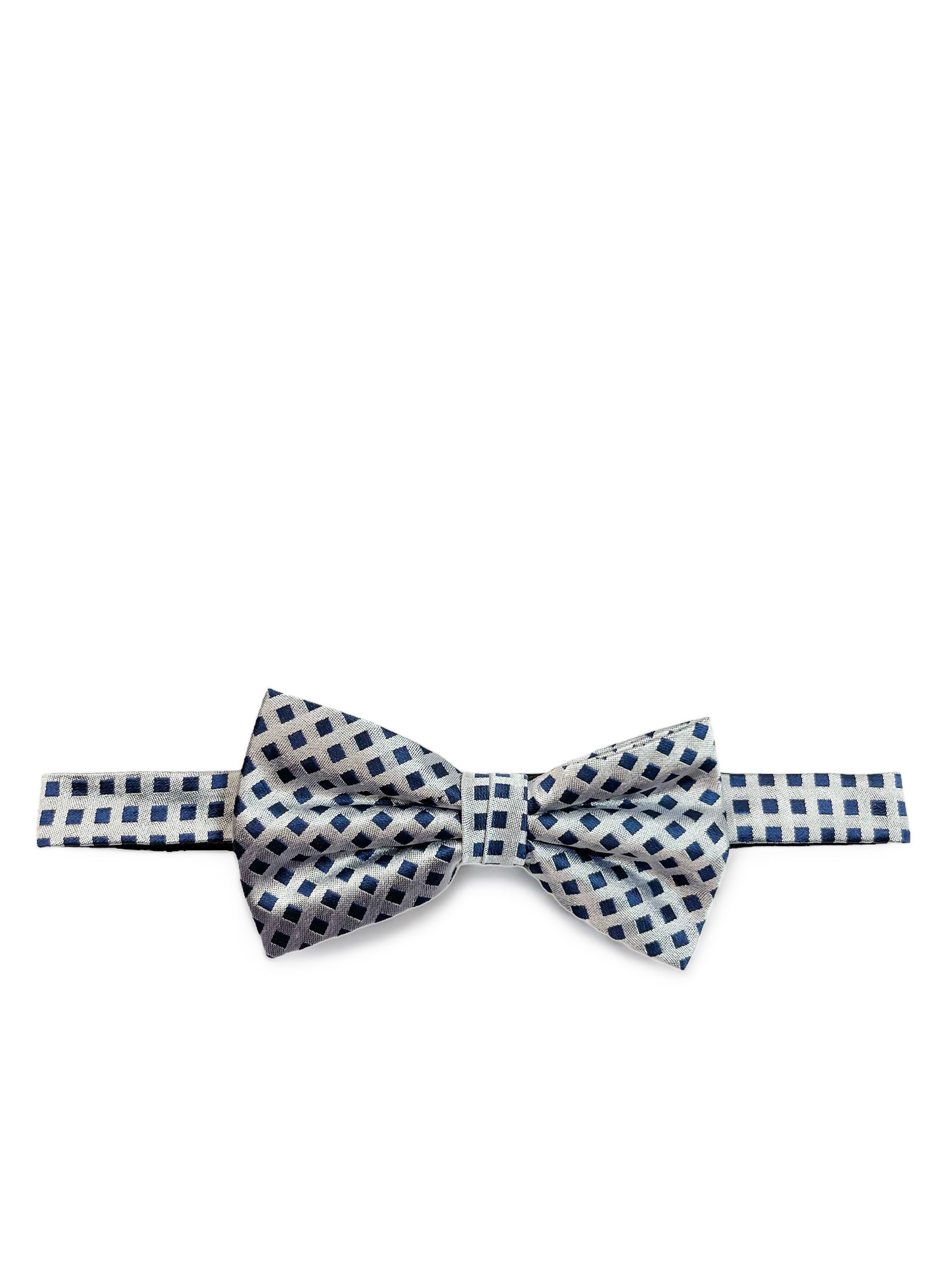 Silver and Blue Diamond Patterned Paul Malone Silk Bow Tie. Size adjustable from neck size 14.5 through 18. 100% Silk. Imported....