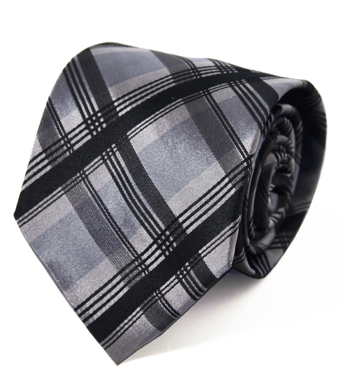 Black and Silver Plaid Paul Malone Silk Tie with Purple and Blue accents. Made of 100% pure mulberry silk, hand...