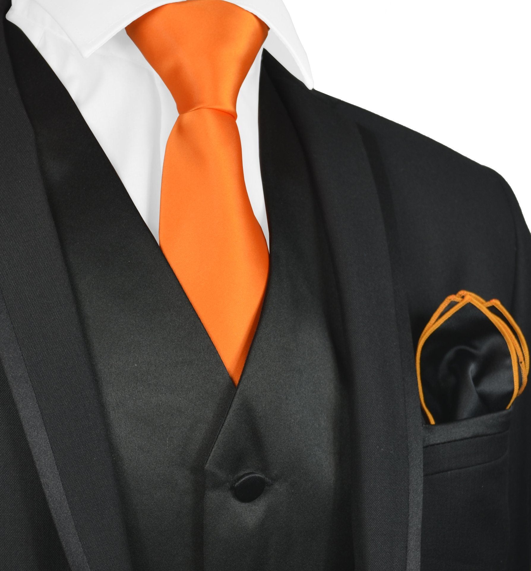 Solid Black Mens Tuxedo Vest, Tie and Trim Pocket Square