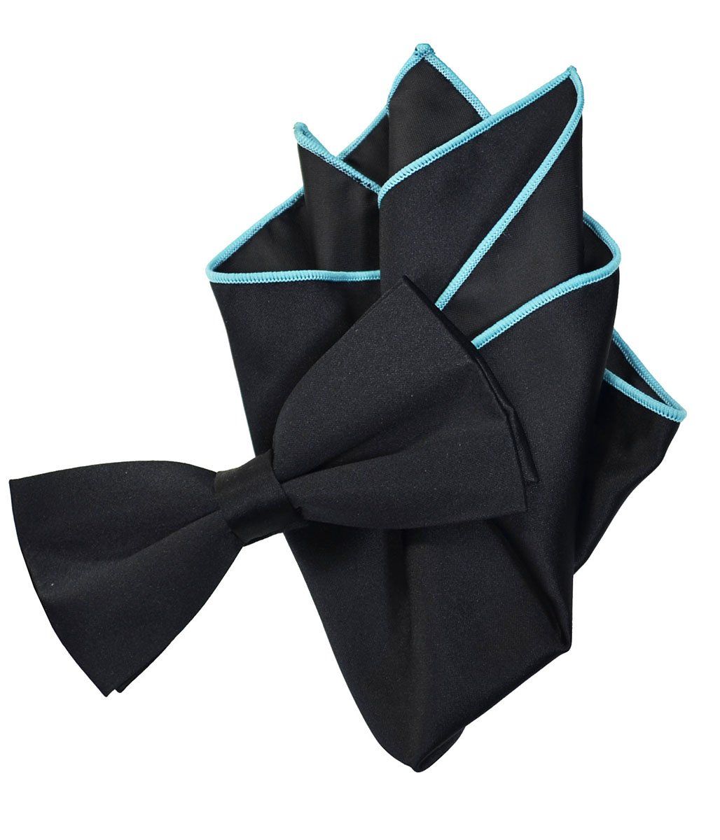Solid Black Pre-Tied Bow Tie and Pocket Square