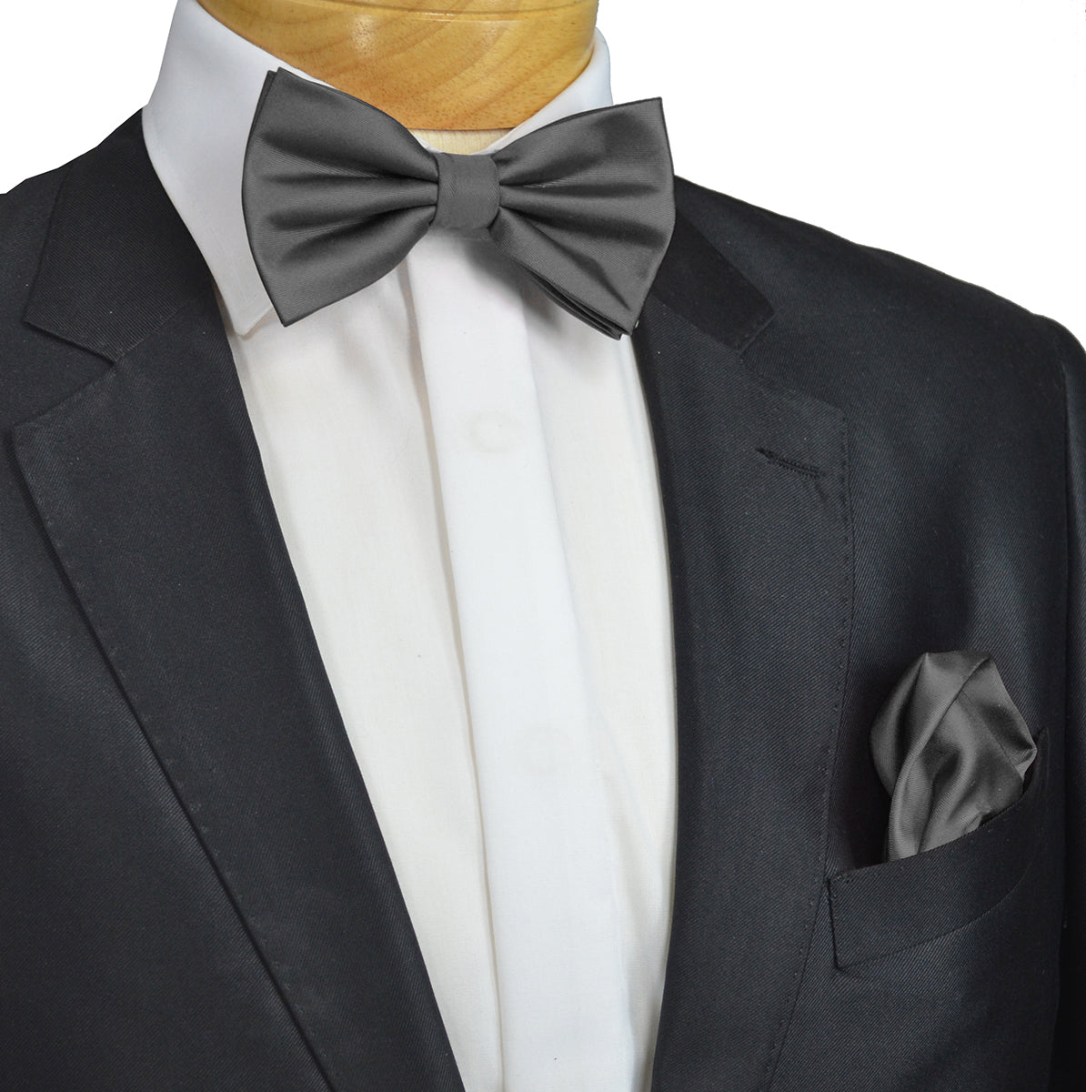 Solid Charcoal Wedding Bow Tie and Pocket Square Set