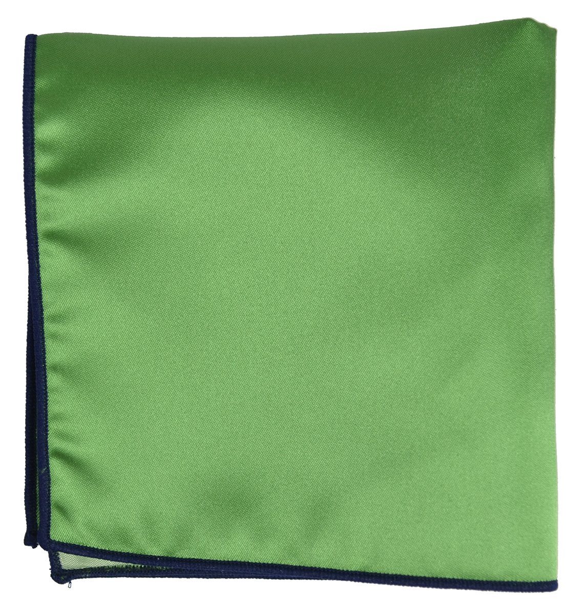 Impress with our Solid Pocket Square in Green with Navy Border, made of a luxurious 100% microfiber. The perfect addition to any outfit, it is jacquard woven and imported for the highest quality.