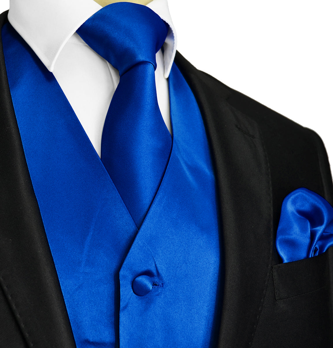 Elegant Solid Royal Blue Vest Set. This tuxedo vest set includes the vest, your choice of Necktie or pre-tied Bow...