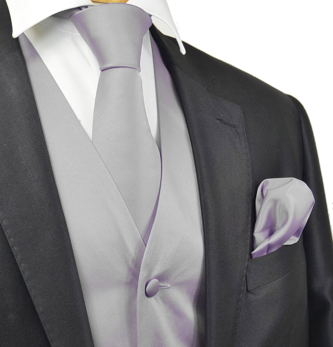 Elegant Solid Silver Grey Vest Set. This tuxedo vest set includes the vest, your choice of Necktie or pre-tied Bow...